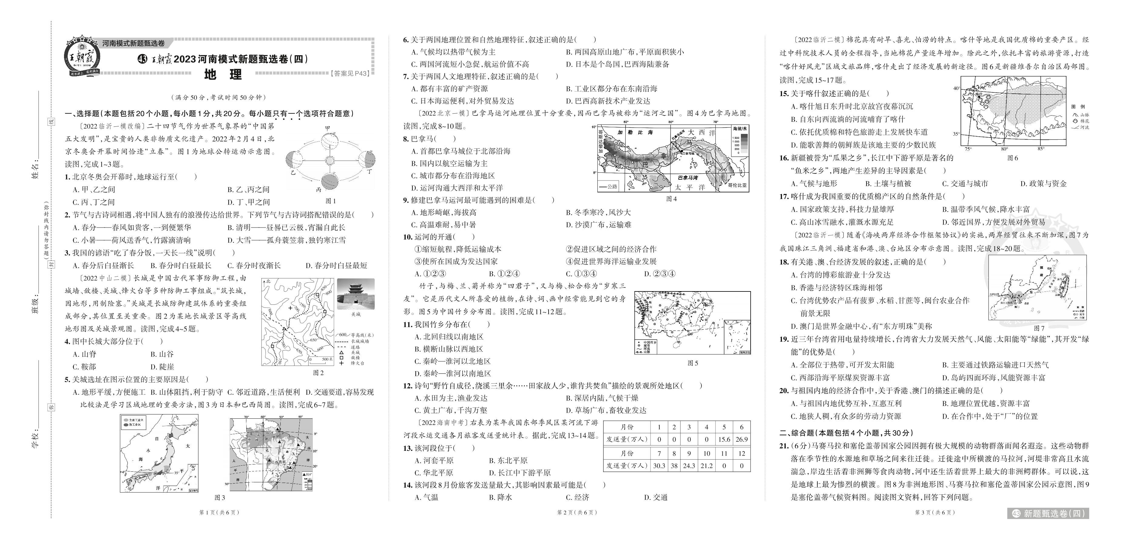 王朝霞2023河南模式新题甄选卷(四).中考地理【43】