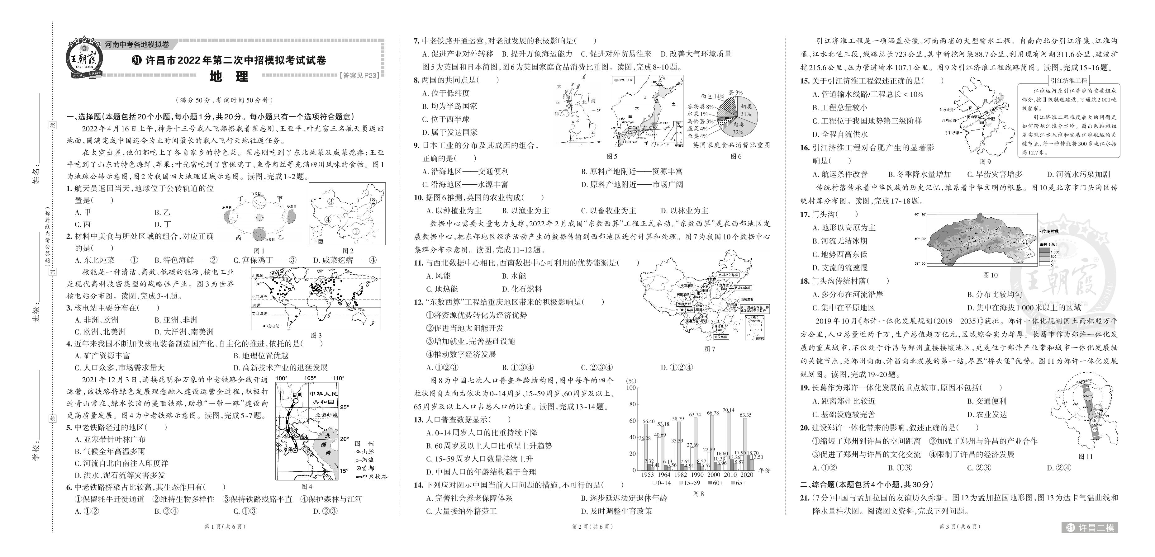 许昌市2022年第二次中招模拟考试试卷.地理【31】