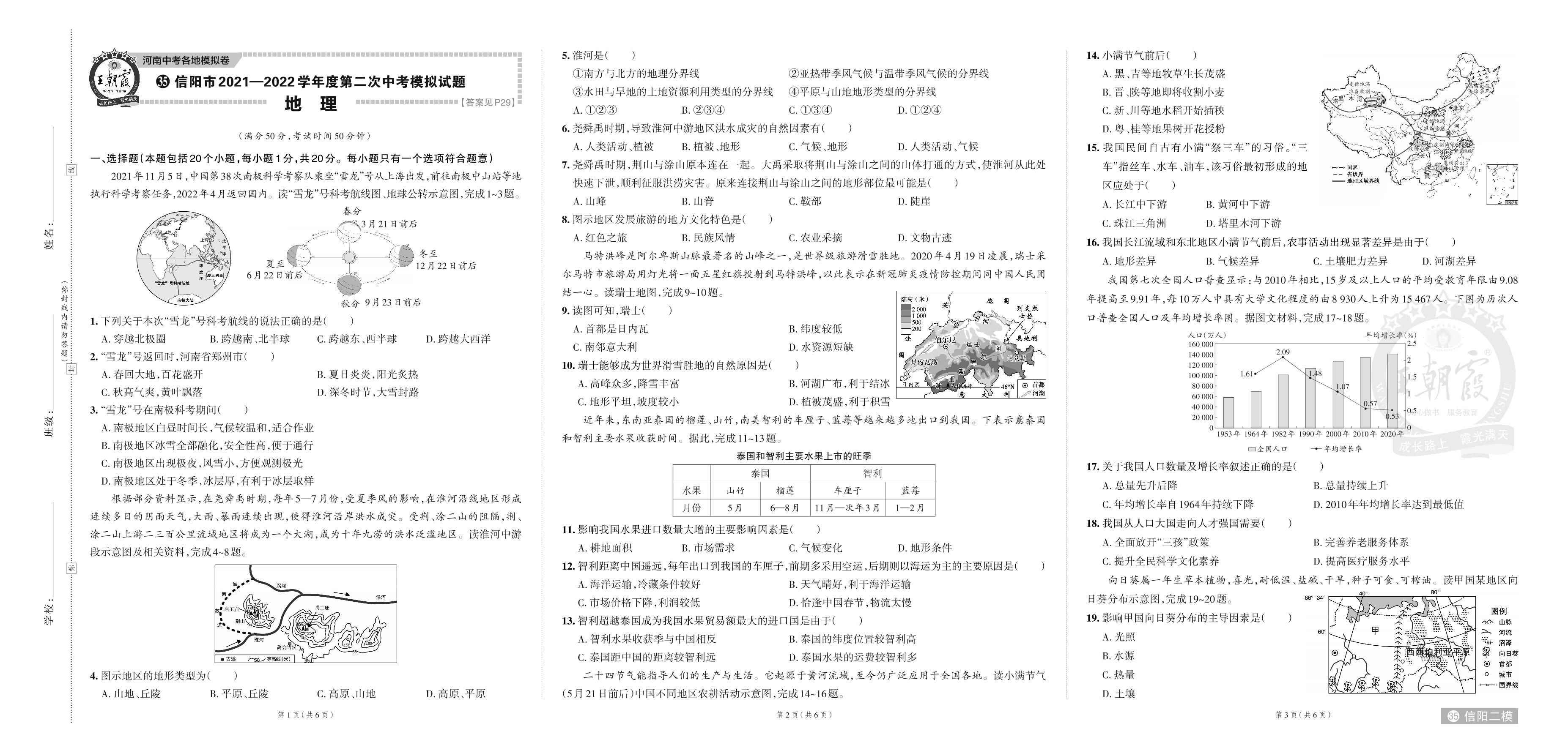 信阳市2021—2022学年度第二次中考模拟试题.地理【35】