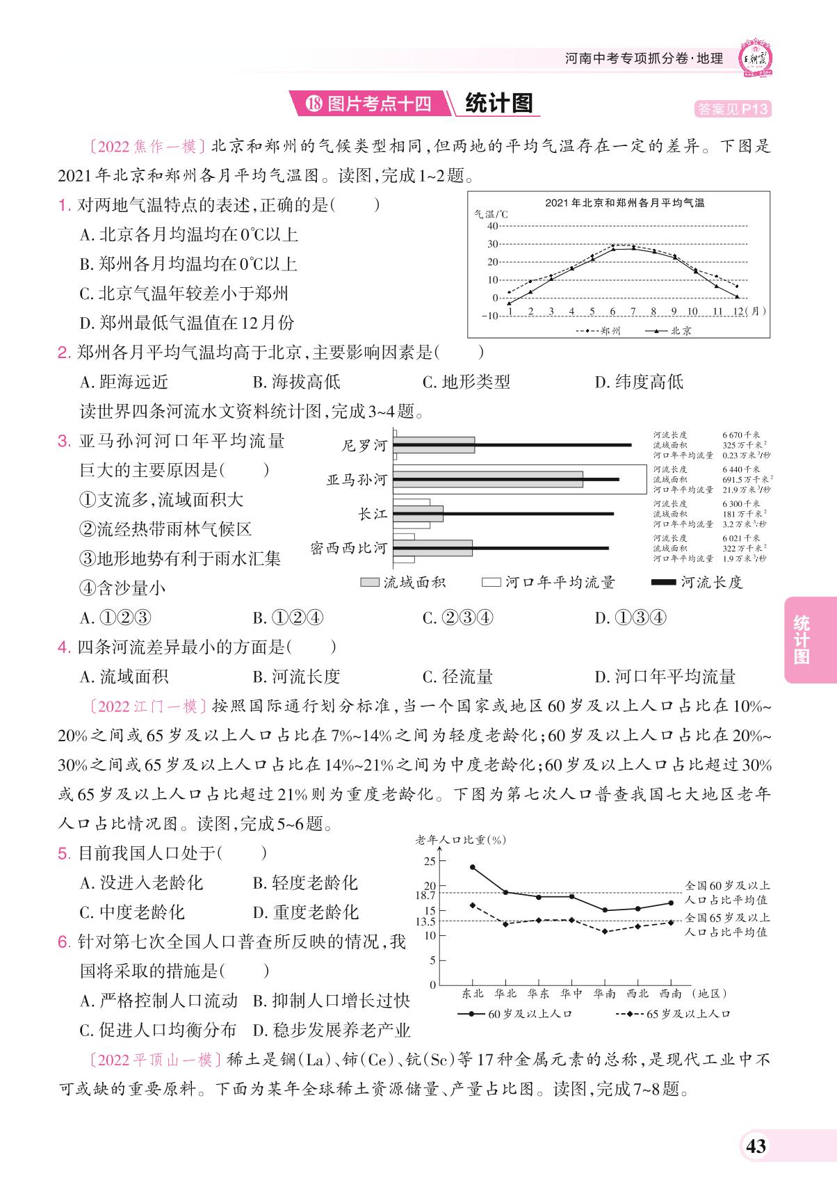 河南中考专项抓分卷 图片考点十四 统计图.地理【18】