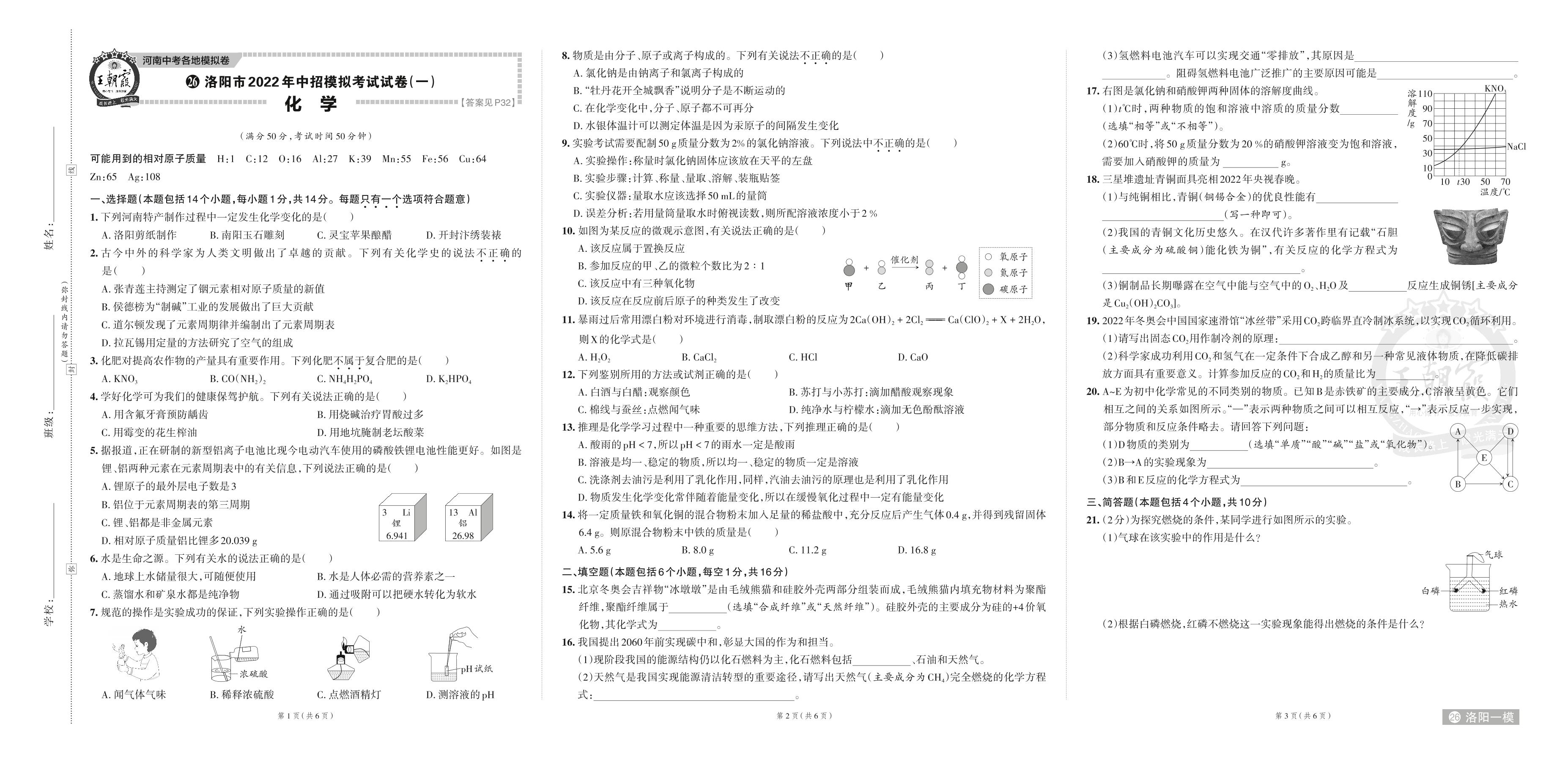 洛阳市2022年中招模拟考试试卷(一).化学【26】