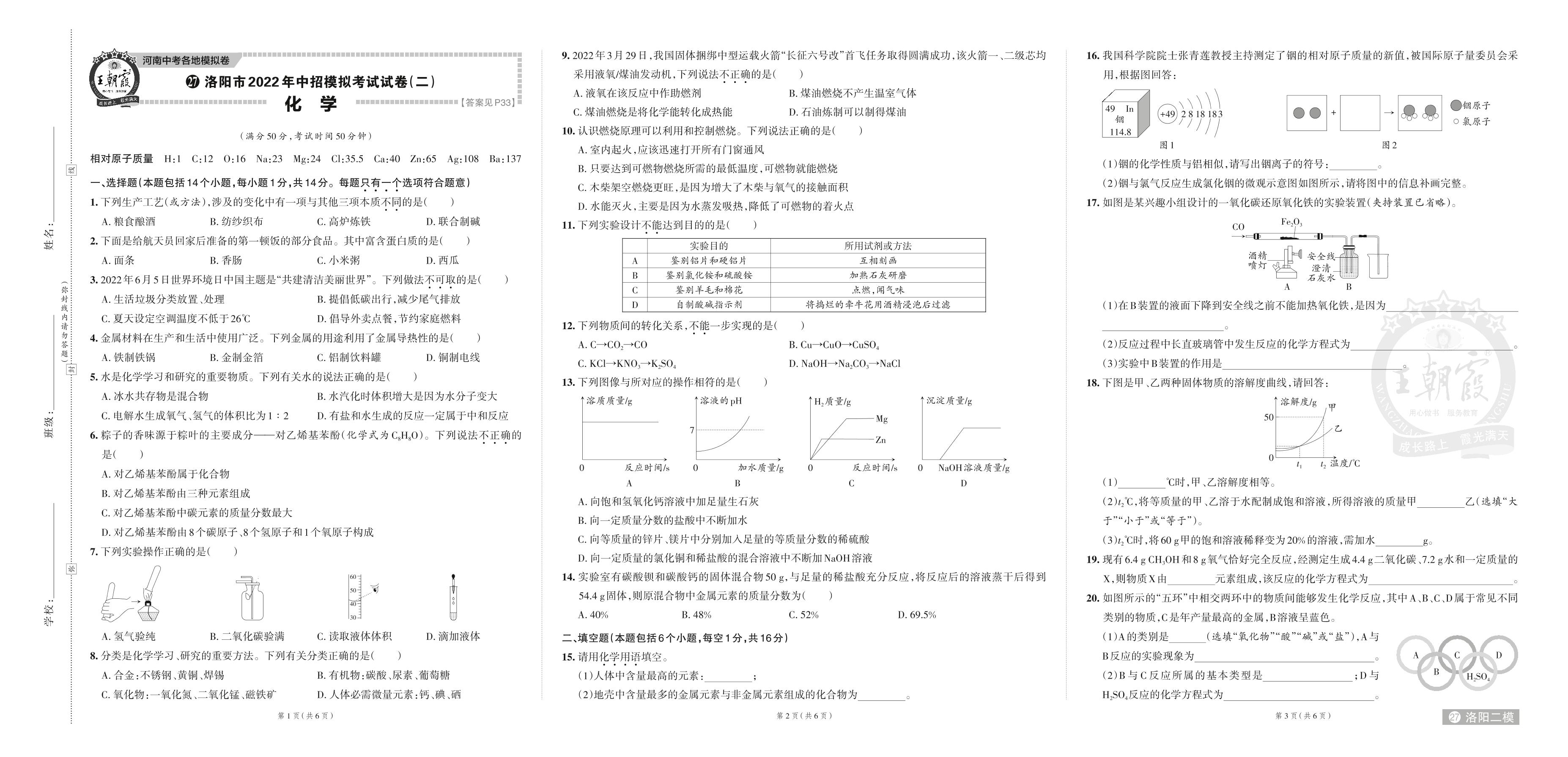 洛阳市2022年中招模拟考试试卷(二).化学【27】