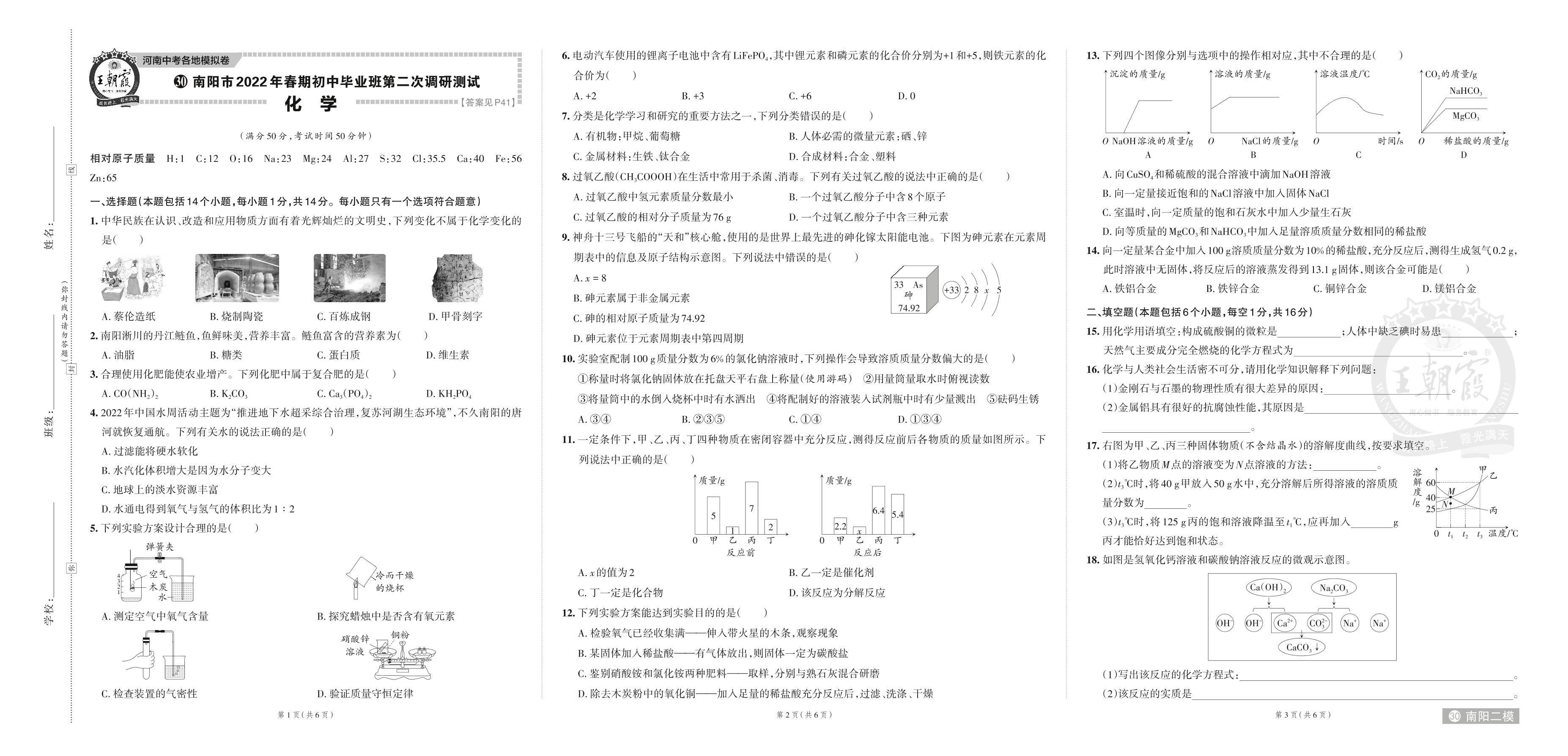南阳市2022年春期初中毕业班第二次调研测试.化学【30】