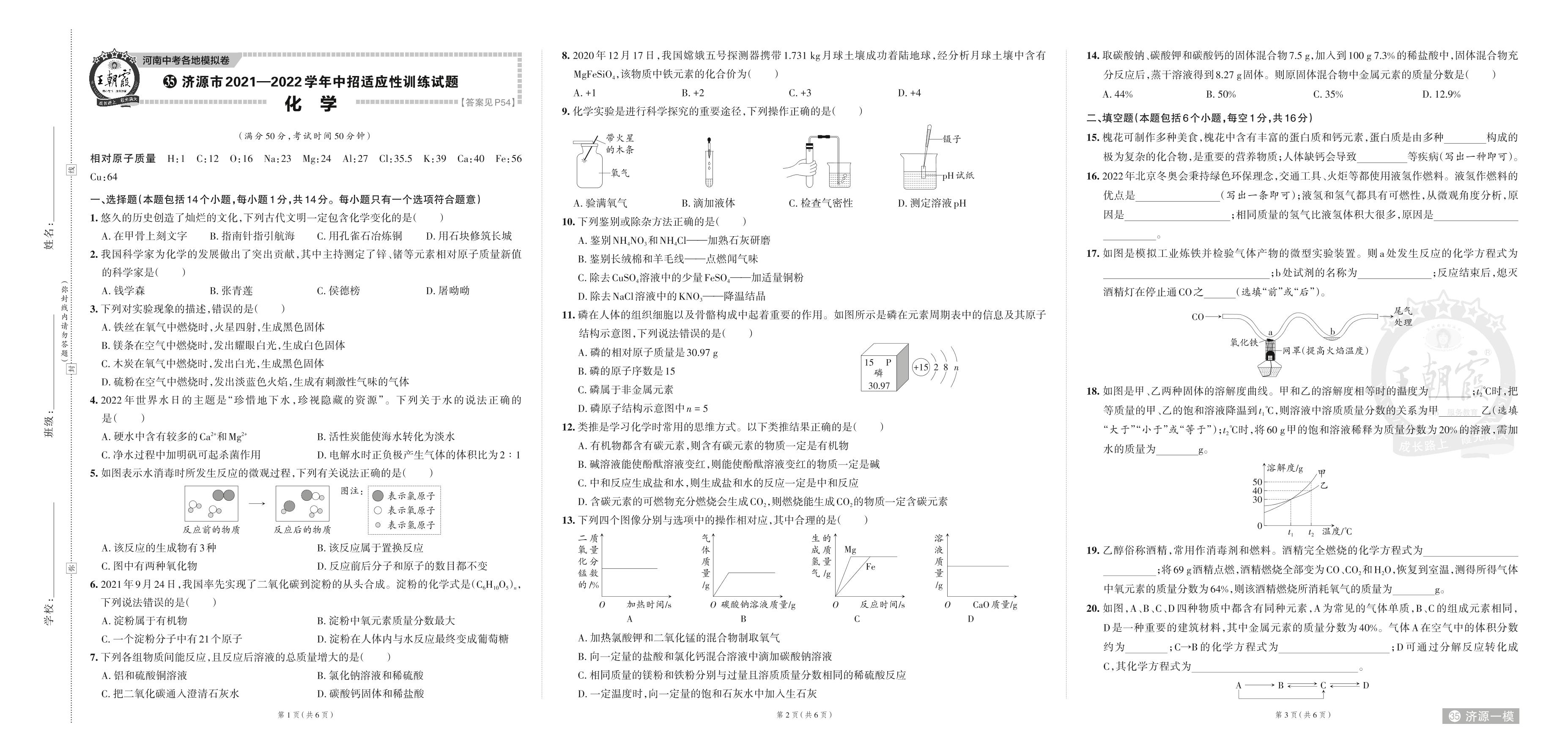济源市2021—2022学年中招适应性训练试题.化学【35】