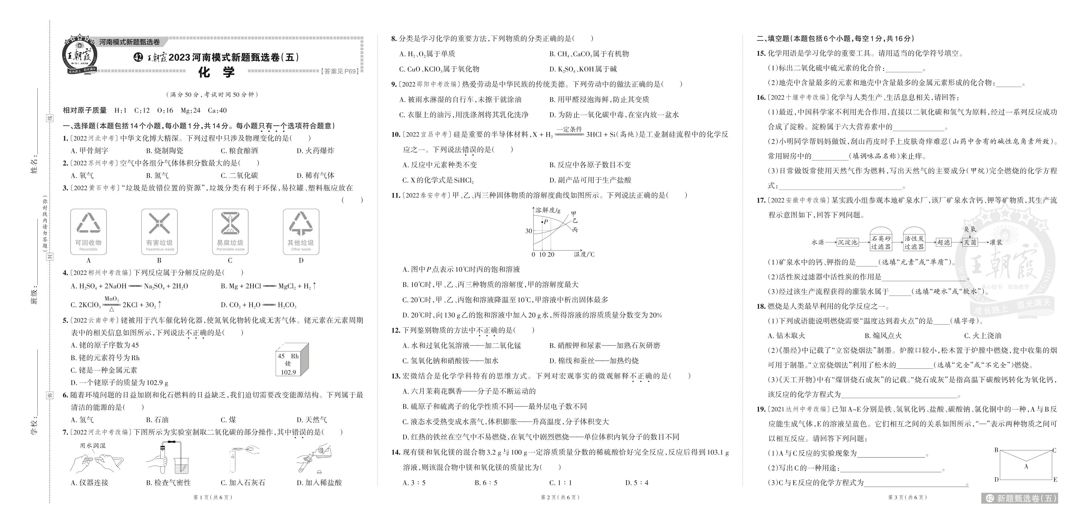 王朝霞2023河南模式新题甄选卷(五).中考化学【42】