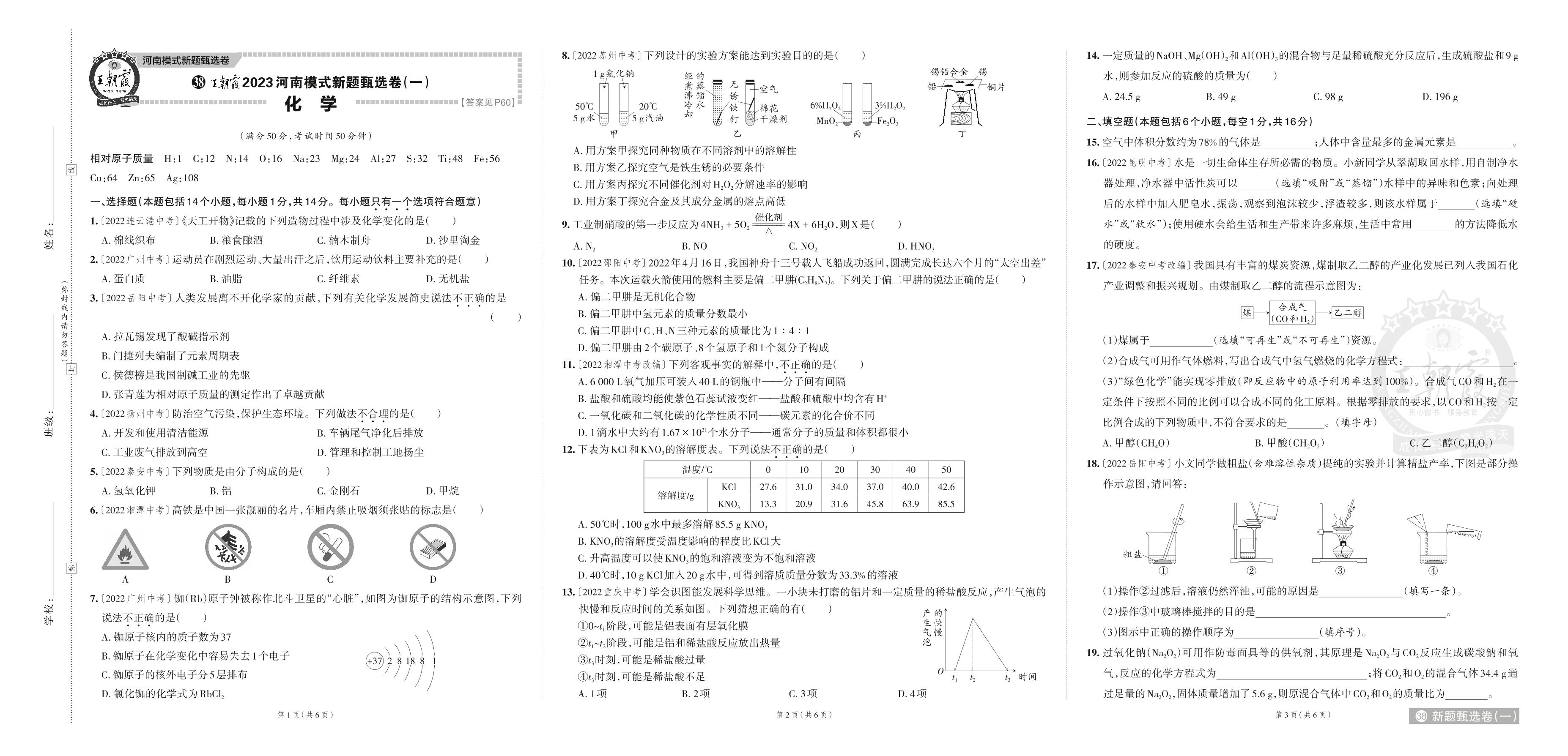 王朝霞2023河南模式新题甄选卷(一).中考化学【38】