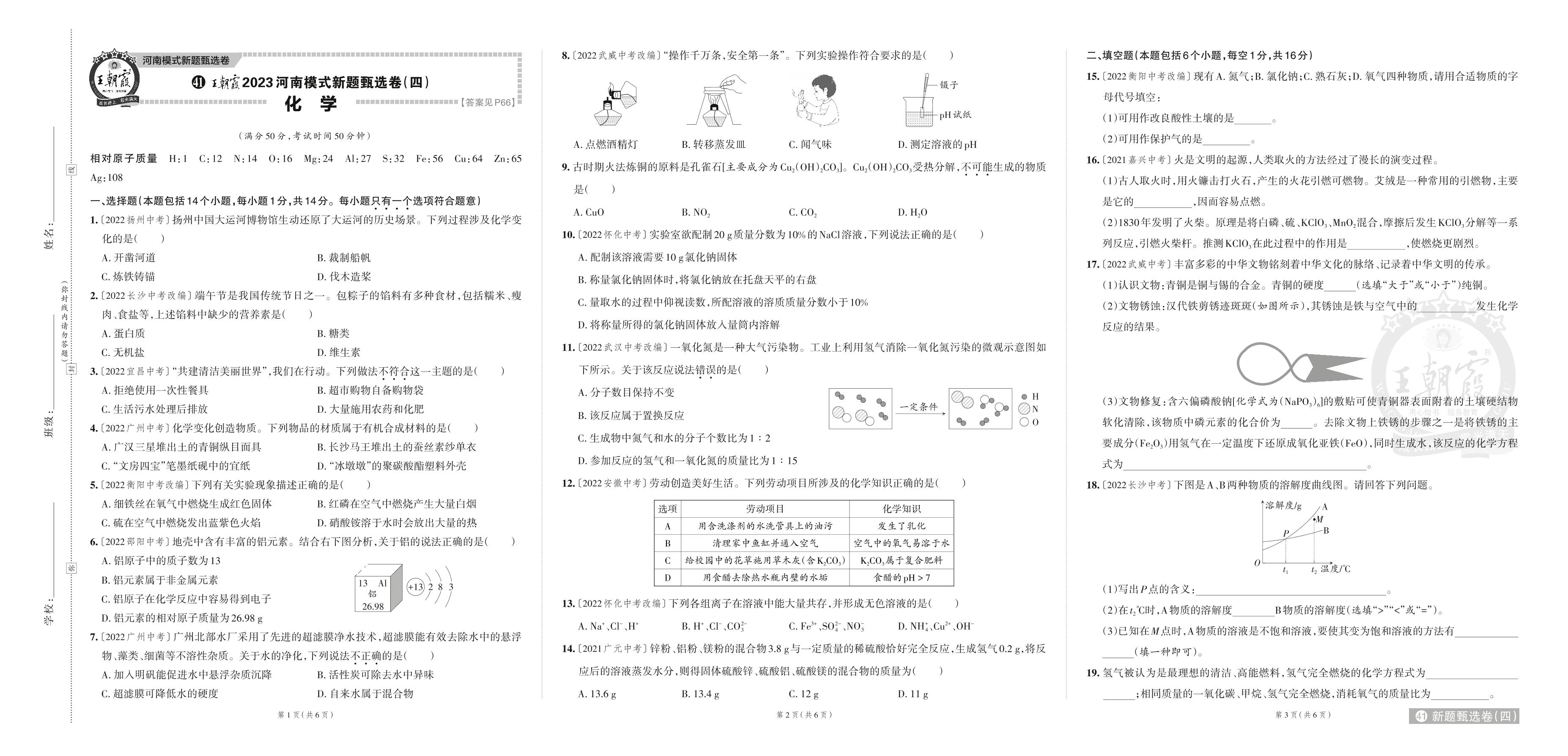 王朝霞2023河南模式新题甄选卷(四).中考化学【41】