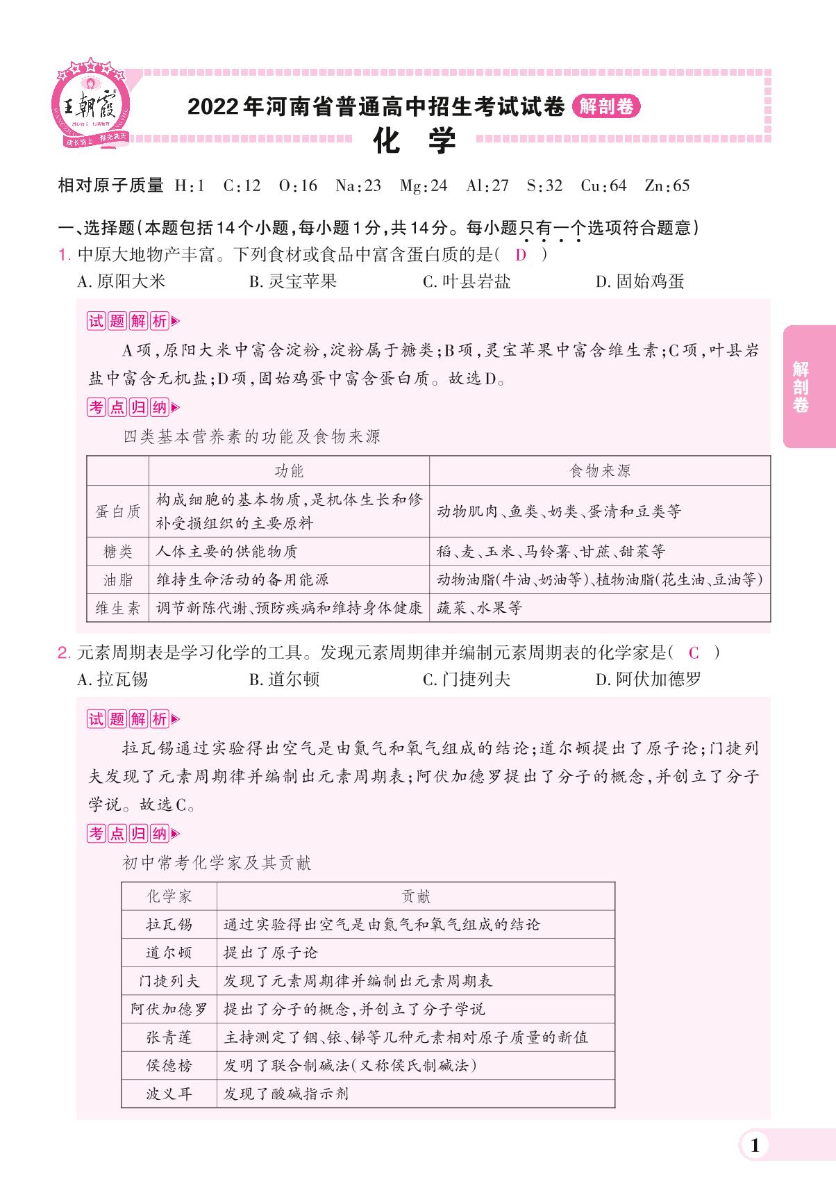 2022年河南省普通高中招生考试试卷(解剖卷).化学
