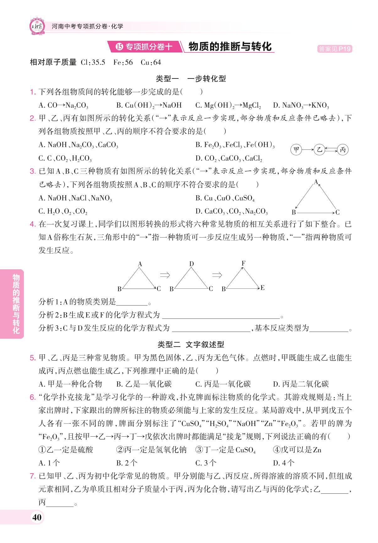 河南中考专项抓分卷十 物质的推断与转化.化学【15】