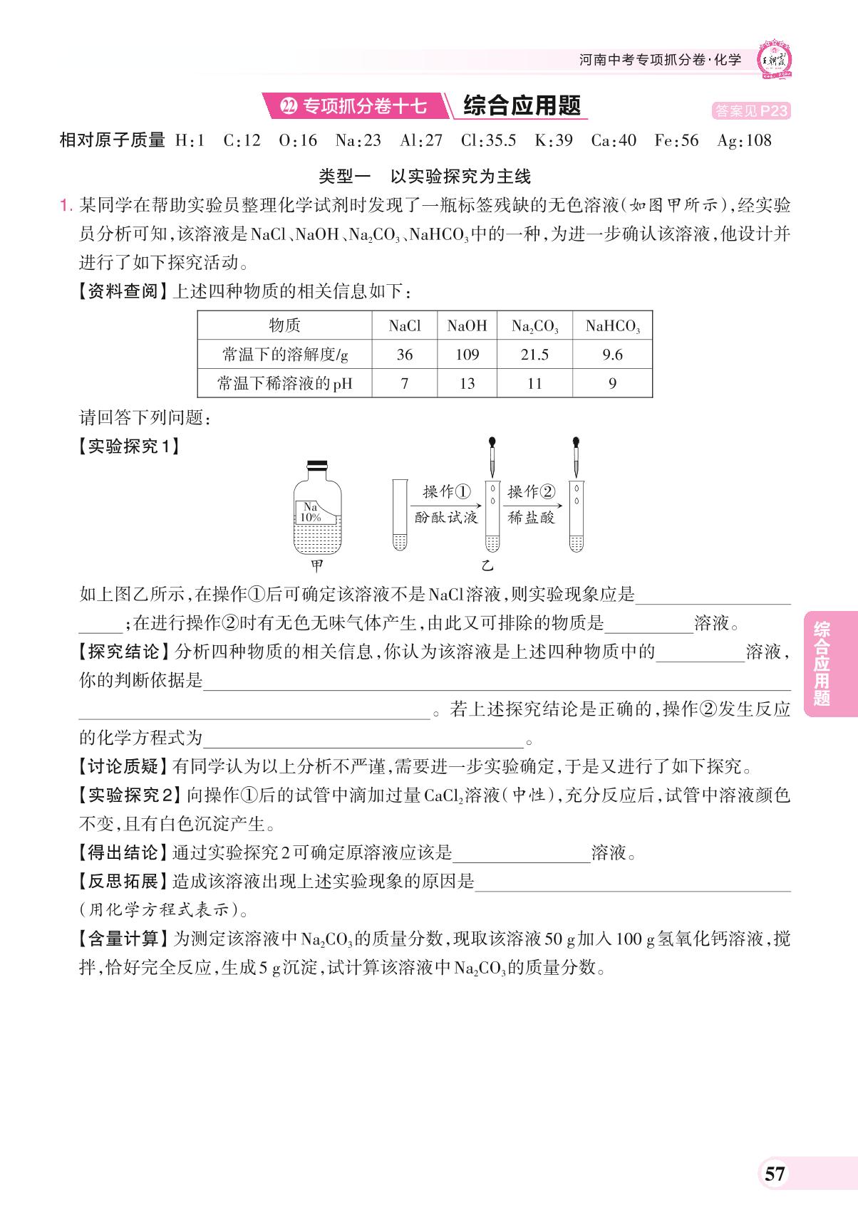 河南中考专项抓分卷十七 综合应用题.化学【22】