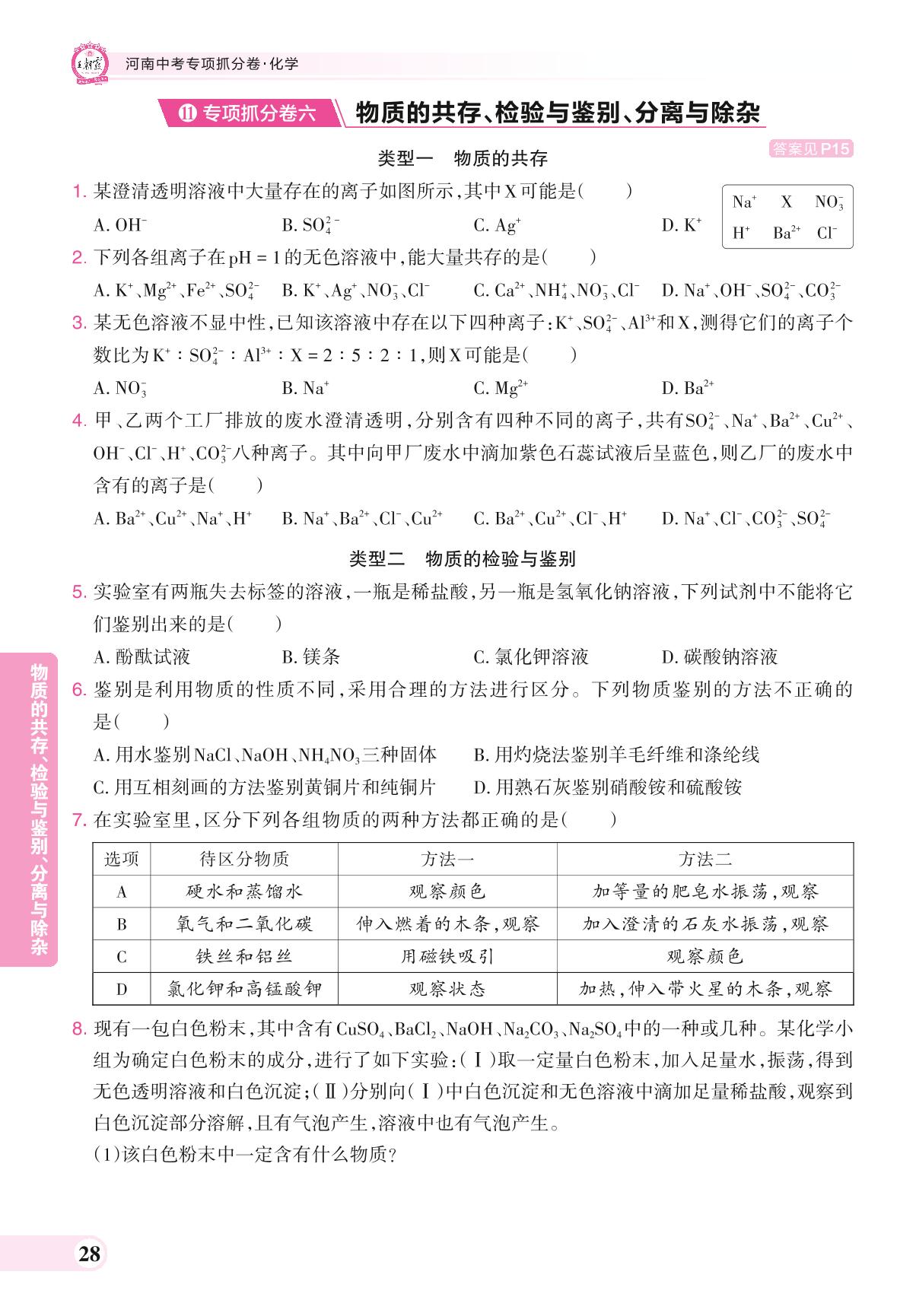 河南中考专项抓分卷六 物质的共存、检验与鉴别、分离与除杂.化学【11】