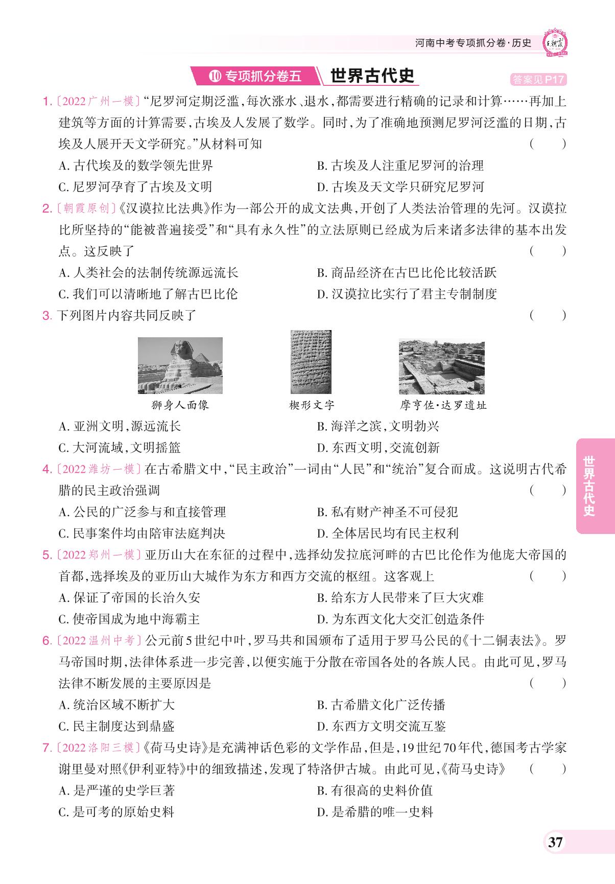 河南中考专项抓分卷五 世界古代史.历史【10】