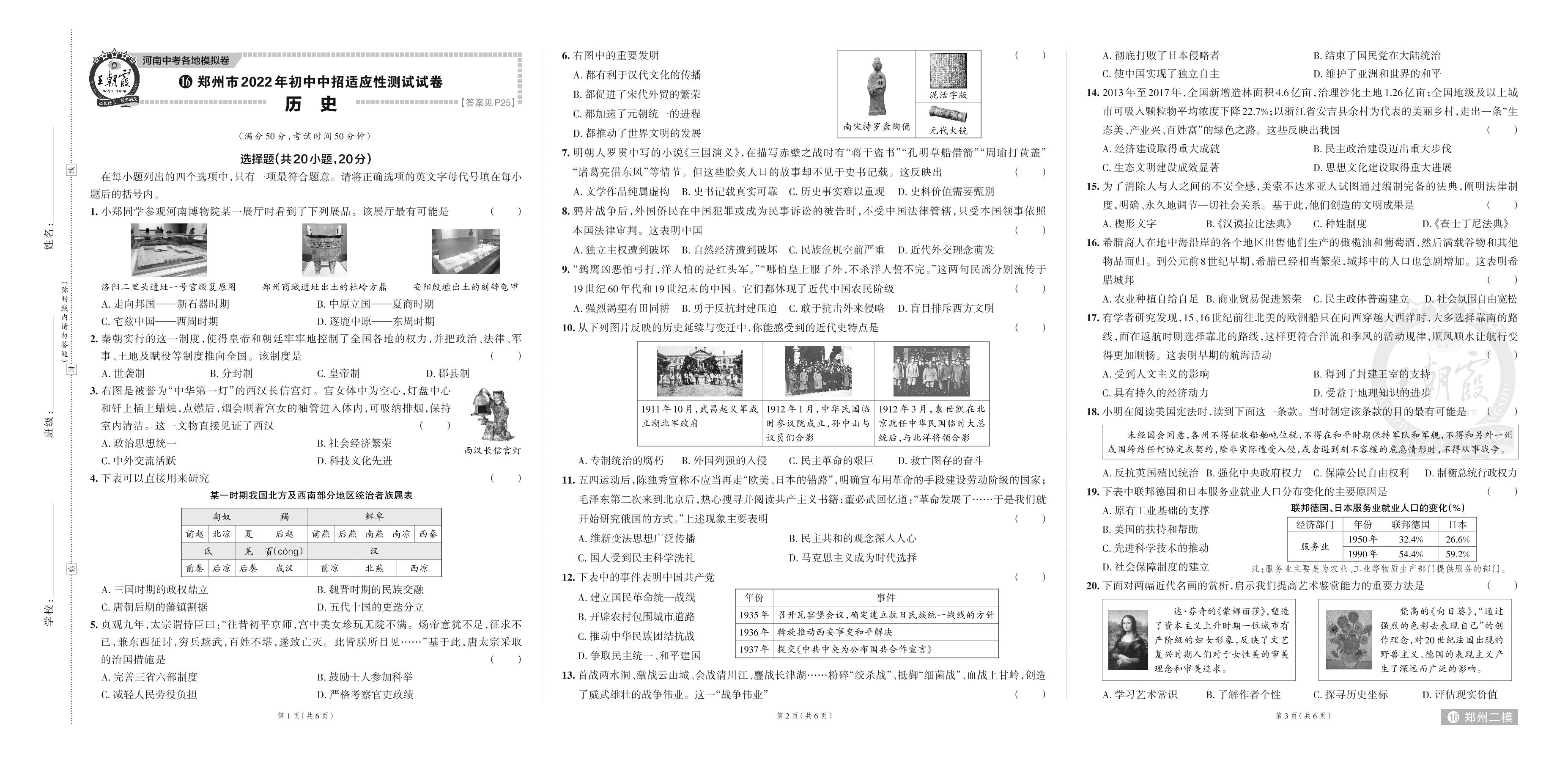 郑州市2022年初中中招适应性测试试卷.历史【16】
