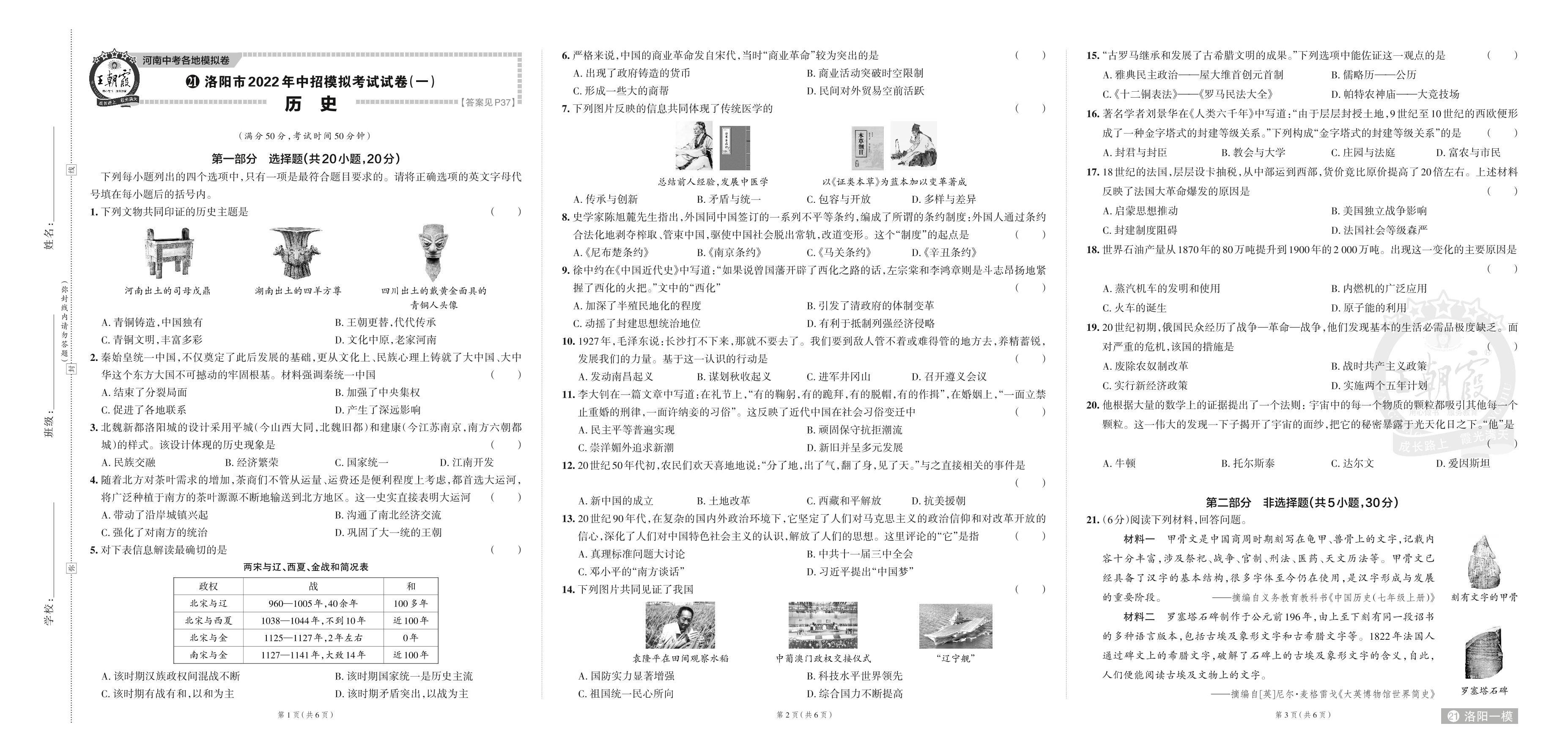洛阳市2022年中招模拟考试试卷(一).历史【21】