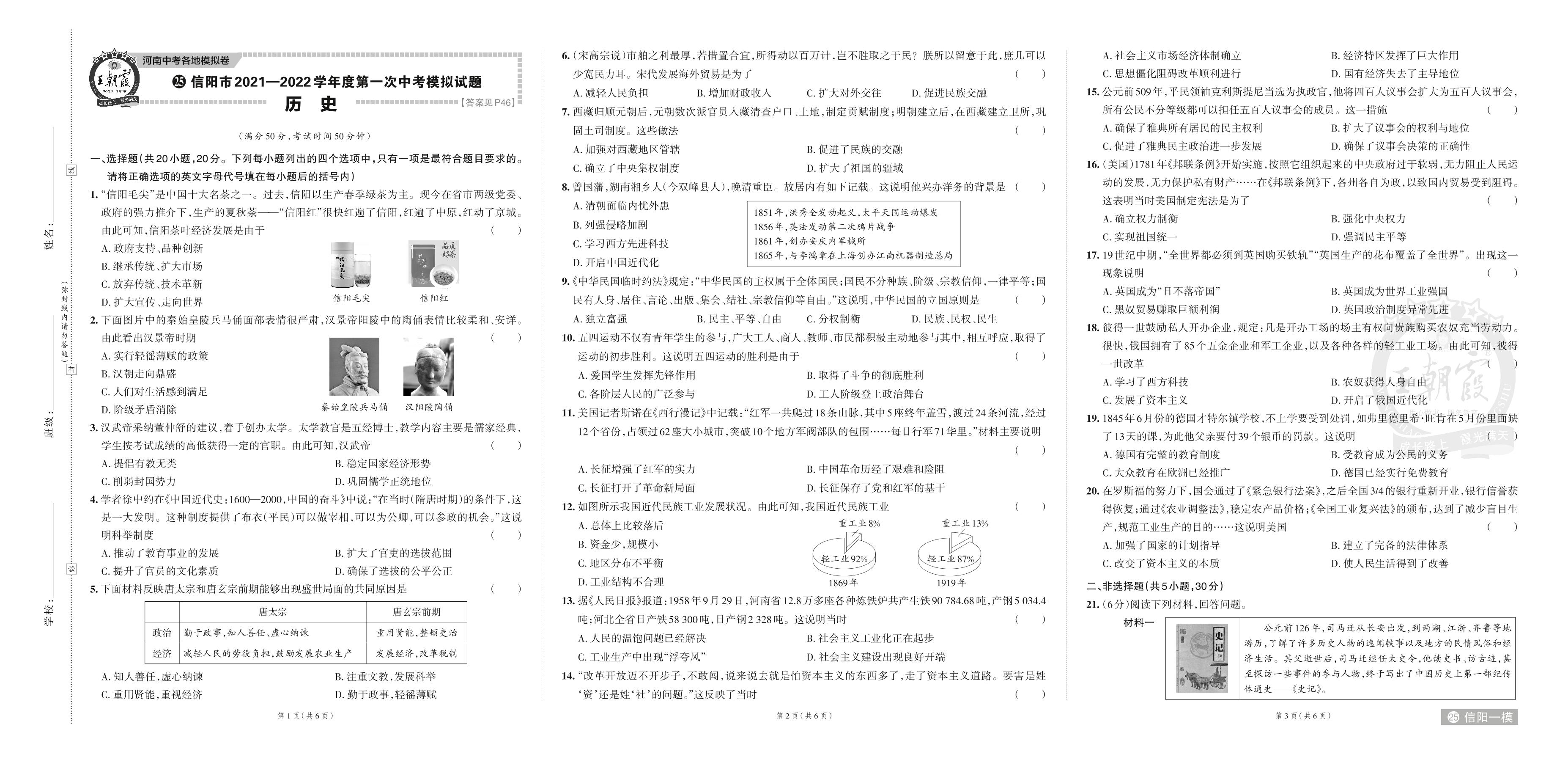 信阳市2021—2022学年度第一次中考模拟试题.历史【25】