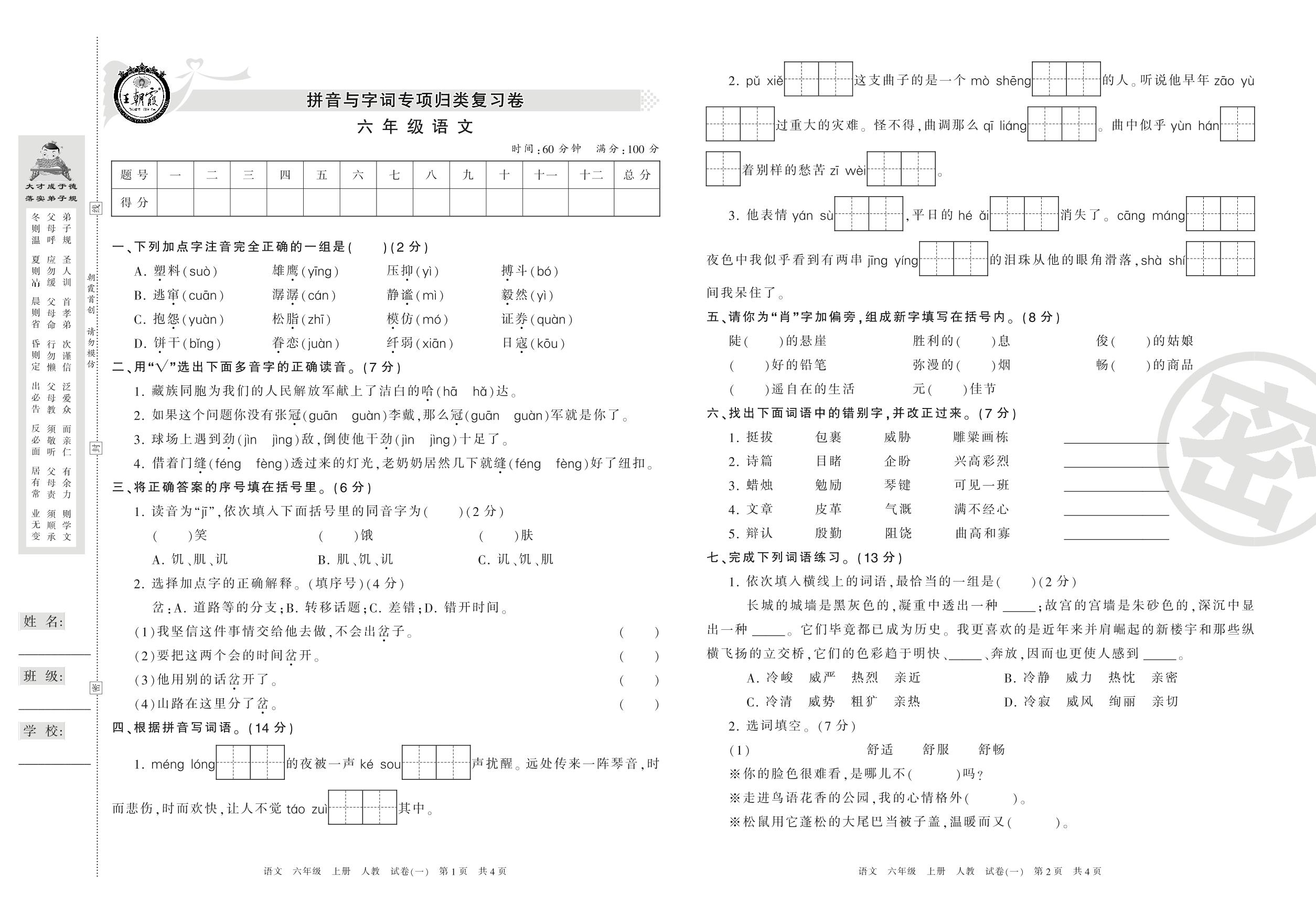 王朝霞期末专项卷六年级上册语文(人教版)_R21080294326【1】