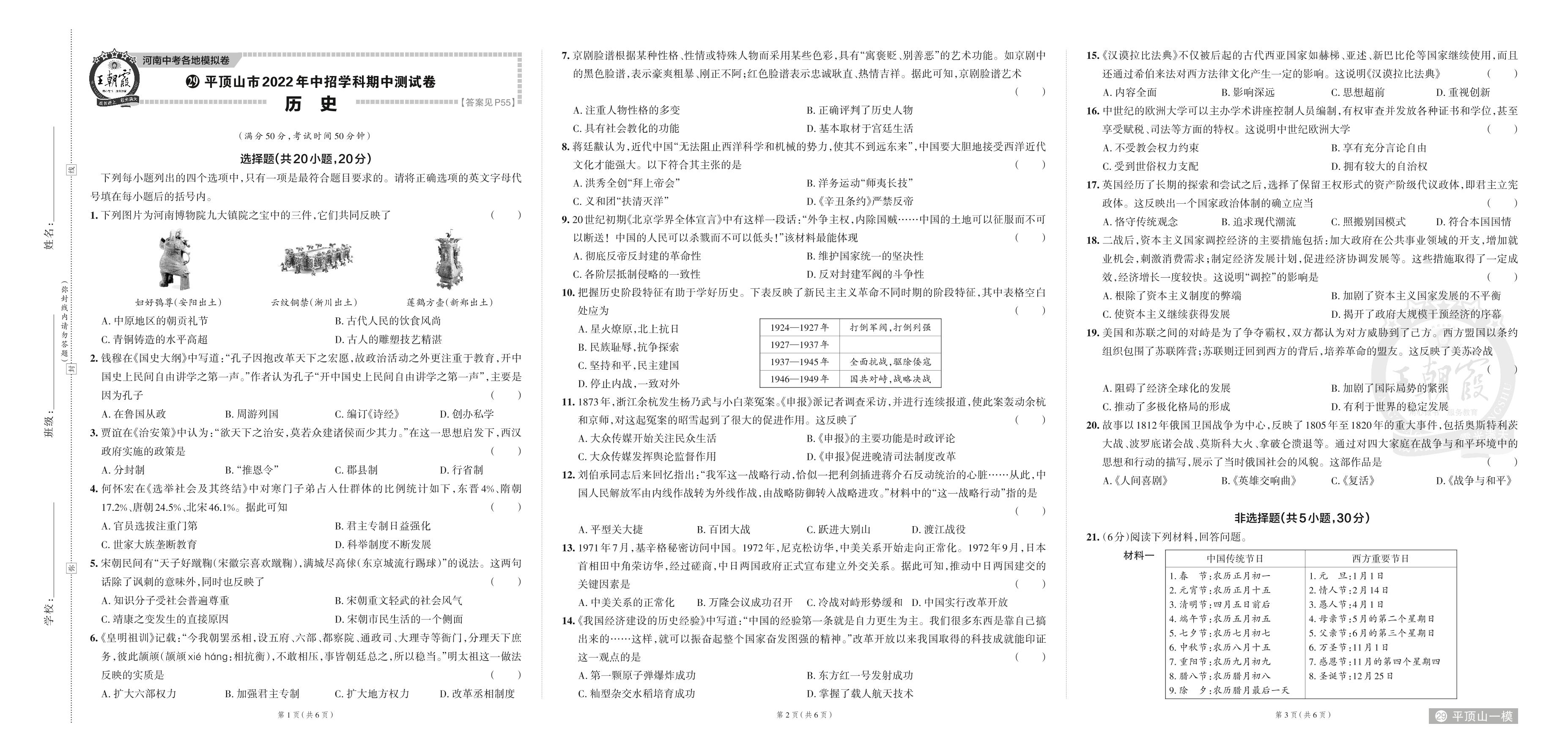 平顶山市2022年中招学科期中测试卷.历史【29】