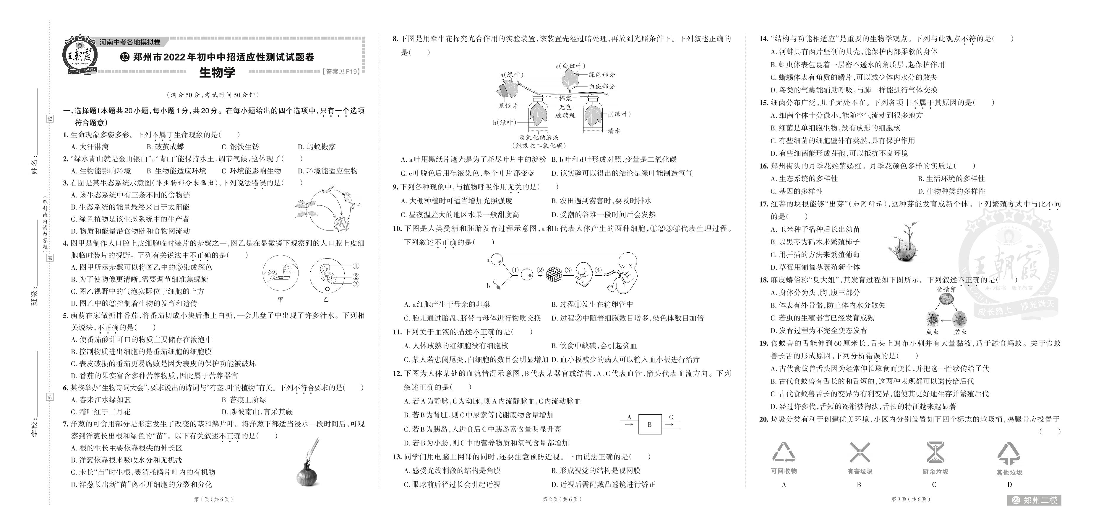 郑州市2022年初中中招适应性测试试题卷.生物【22】