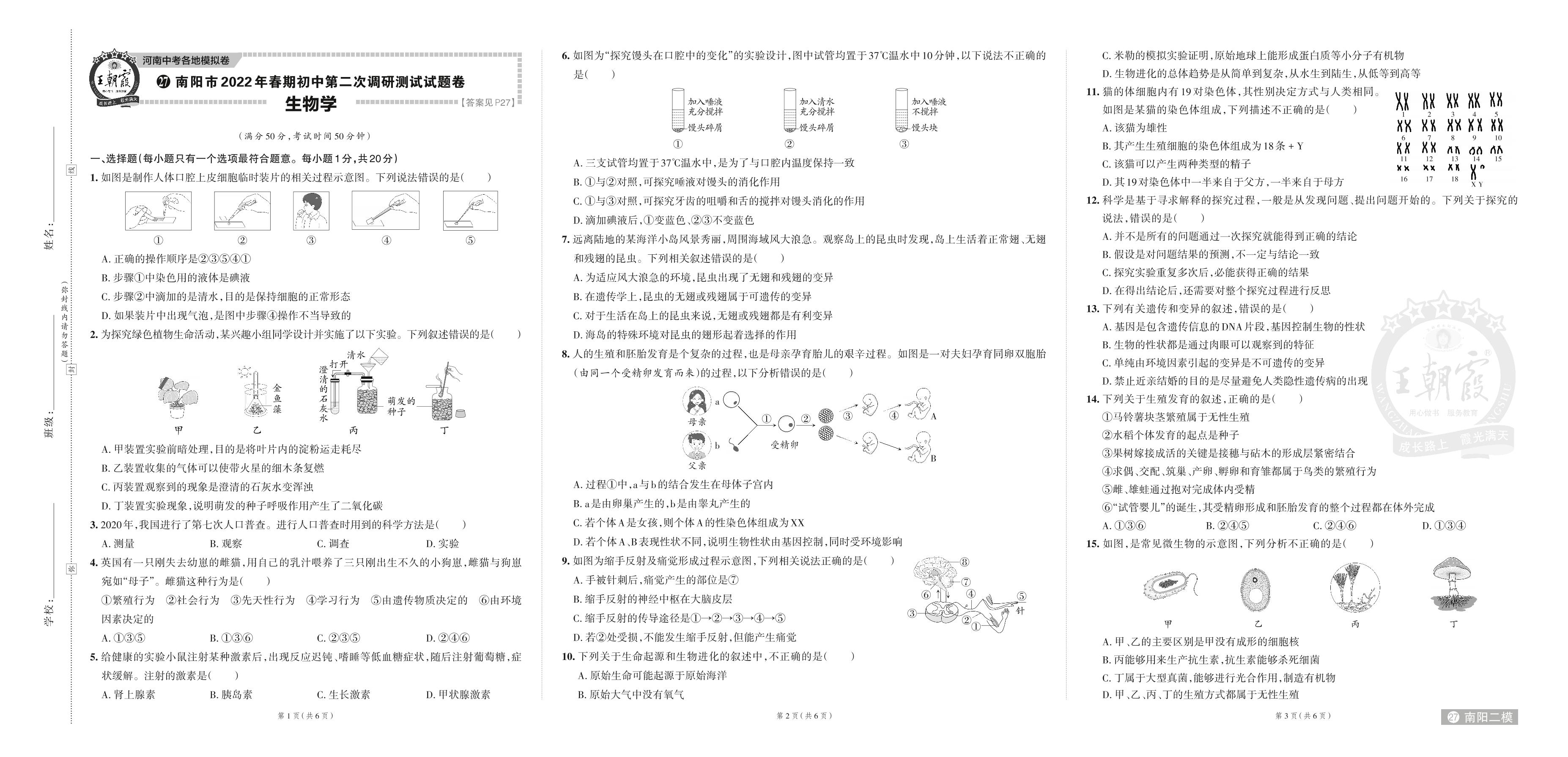南阳市2022年春期初中第二次调研测试试题卷.生物【27】