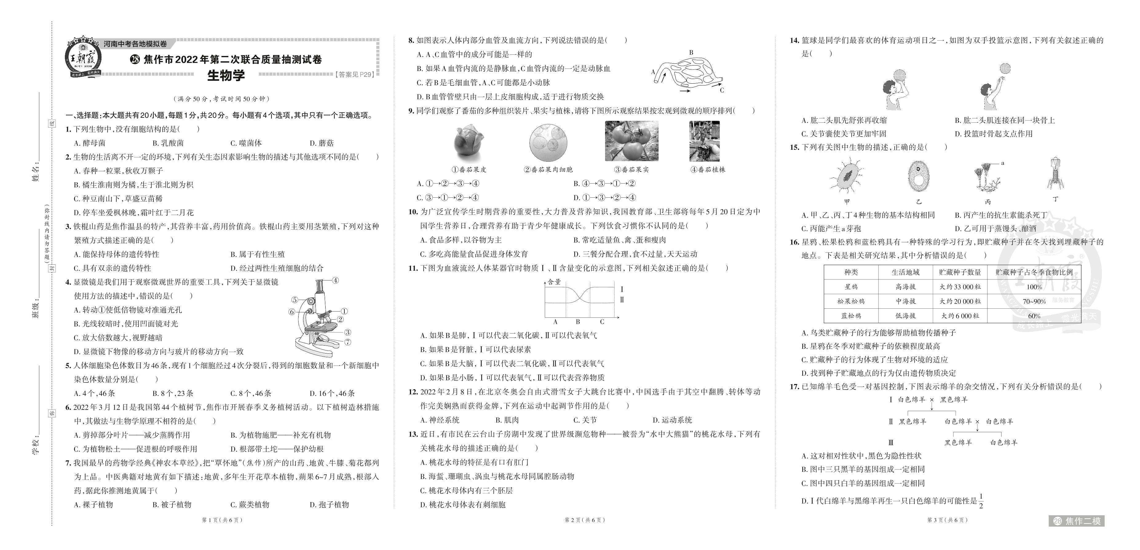 焦作市2022年第二次联合质量抽测试卷.生物【28】