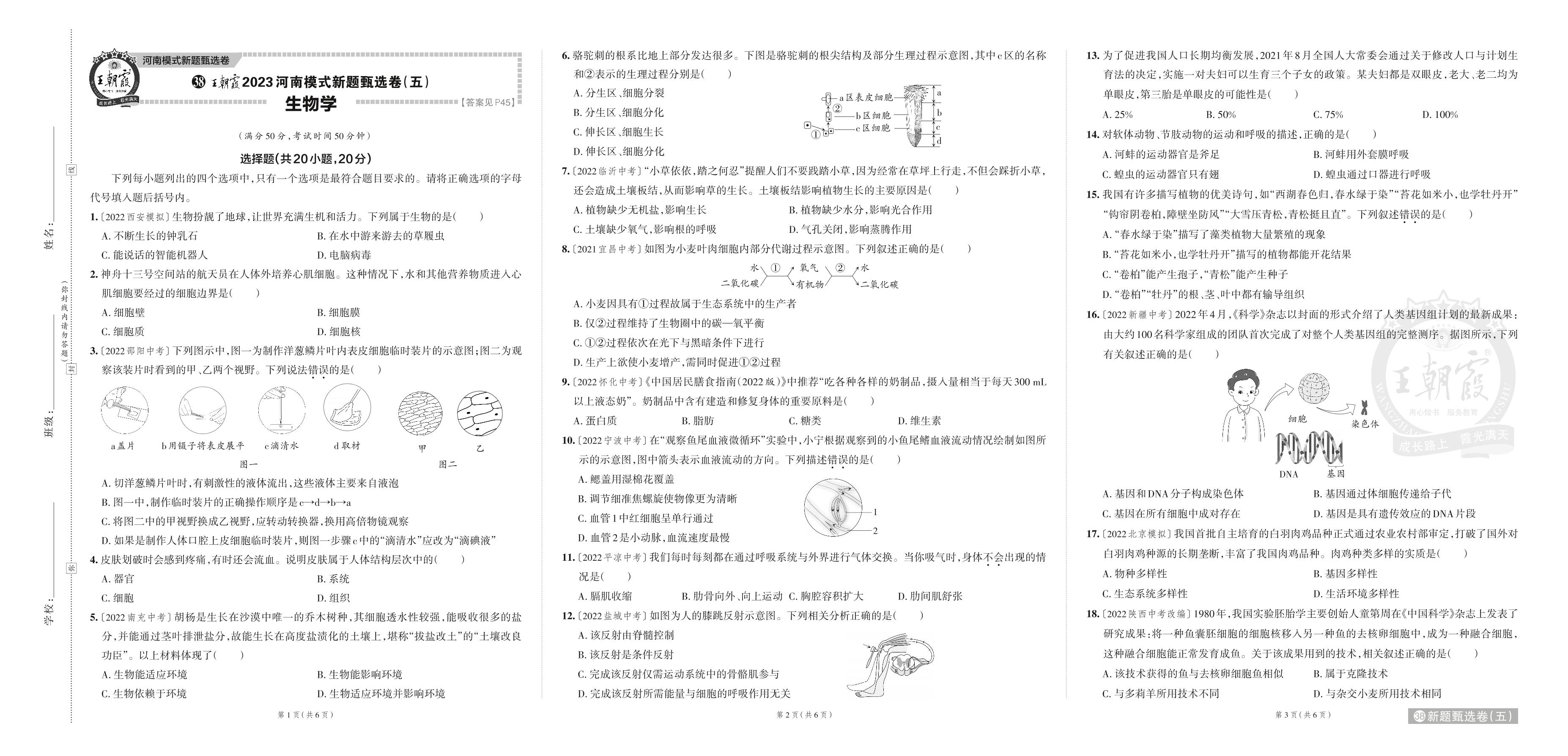 王朝霞2023河南模式新题甄选卷(五).中考生物【38】