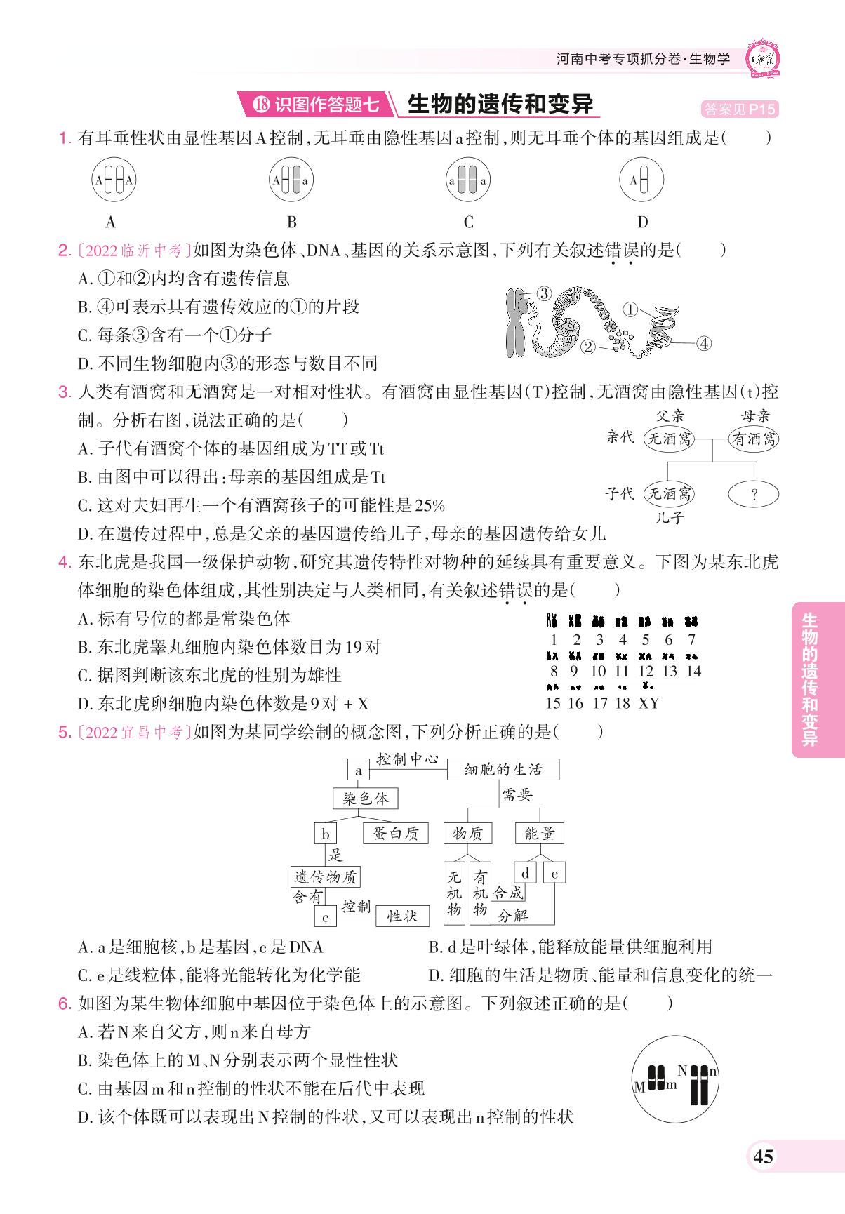 河南中考专项抓分卷 识图作答题七 生物的遗传和变异.生物【18】