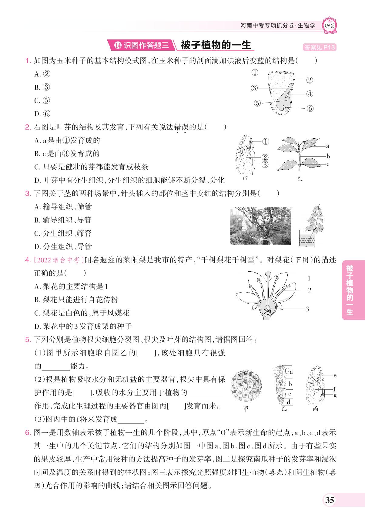 河南中考专项抓分卷 识图作答题三 被子植物的一生.生物【14】