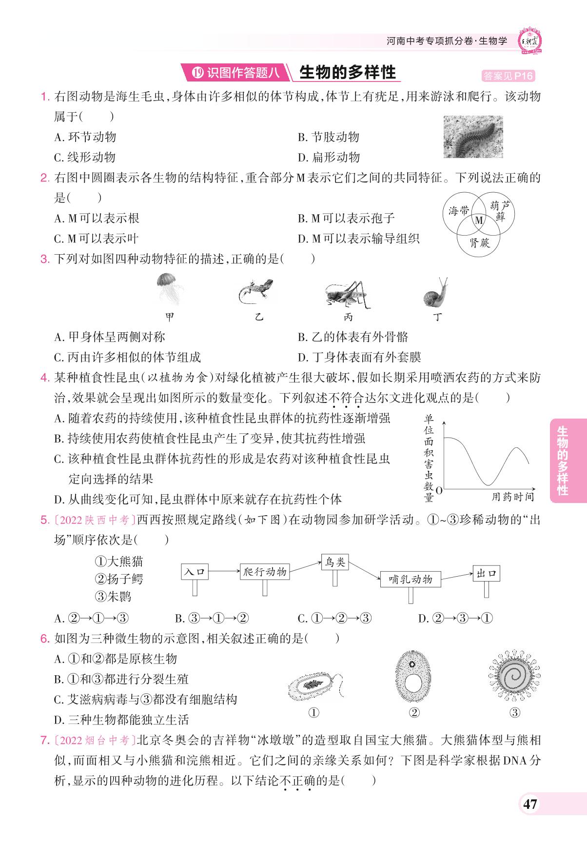 河南中考专项抓分卷 识图作答题八 生物的多样性.生物【19】