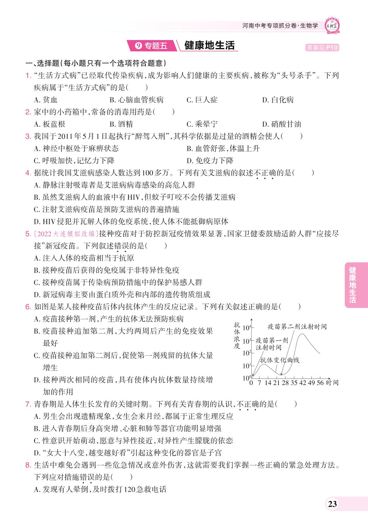 河南中考专项抓分卷 专题五 健康地生活.生物【9】