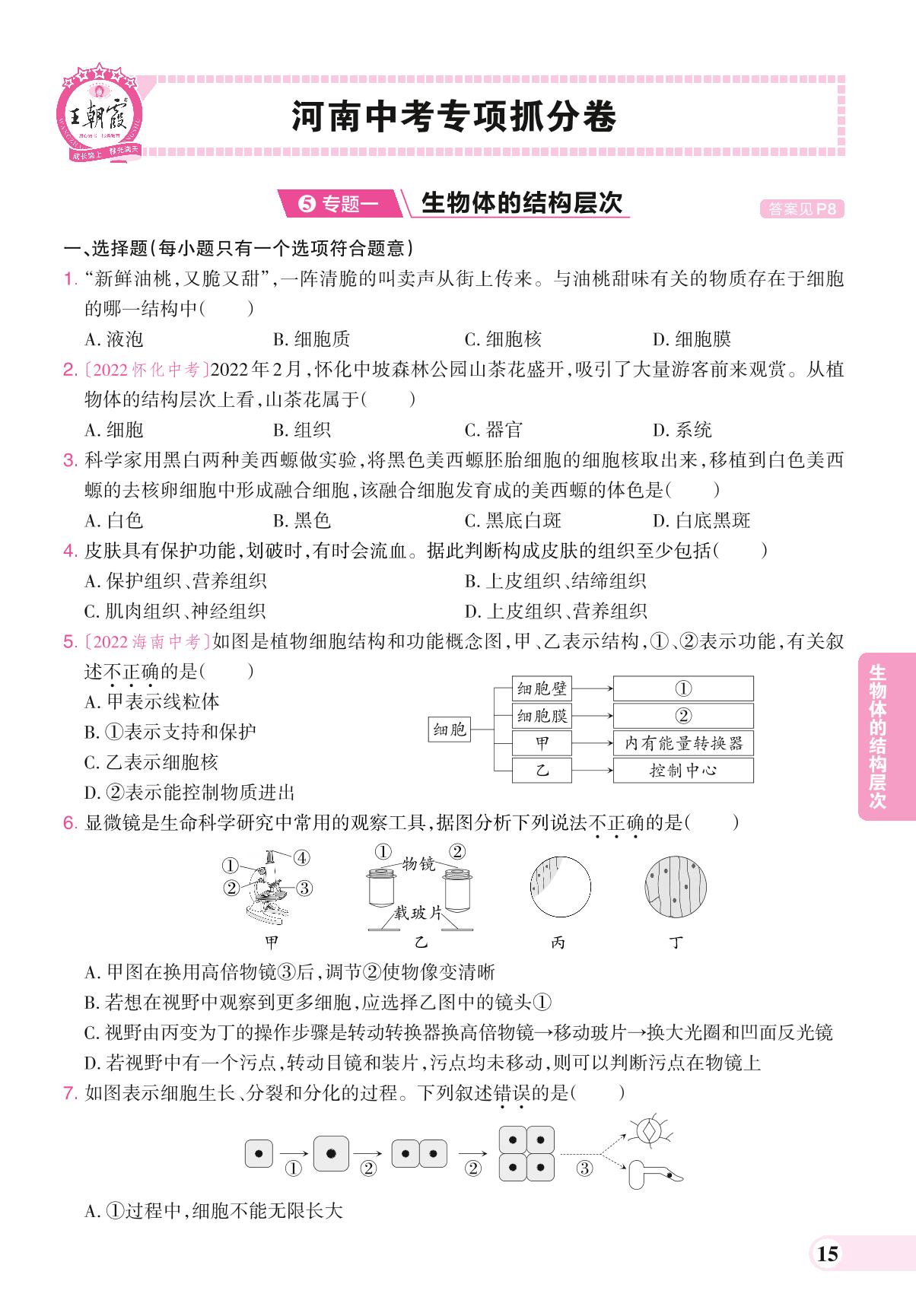 河南中考专项抓分卷 专题一 生物体的结构层次.生物【5】