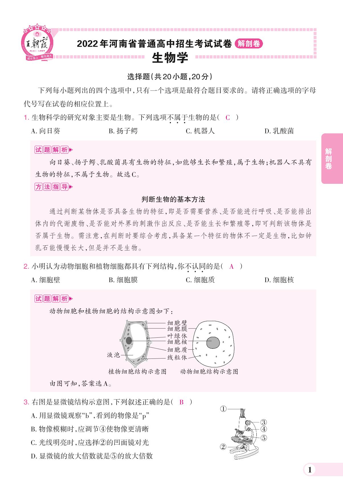 2022年河南省普通高中招生考试试卷(解剖卷).生物