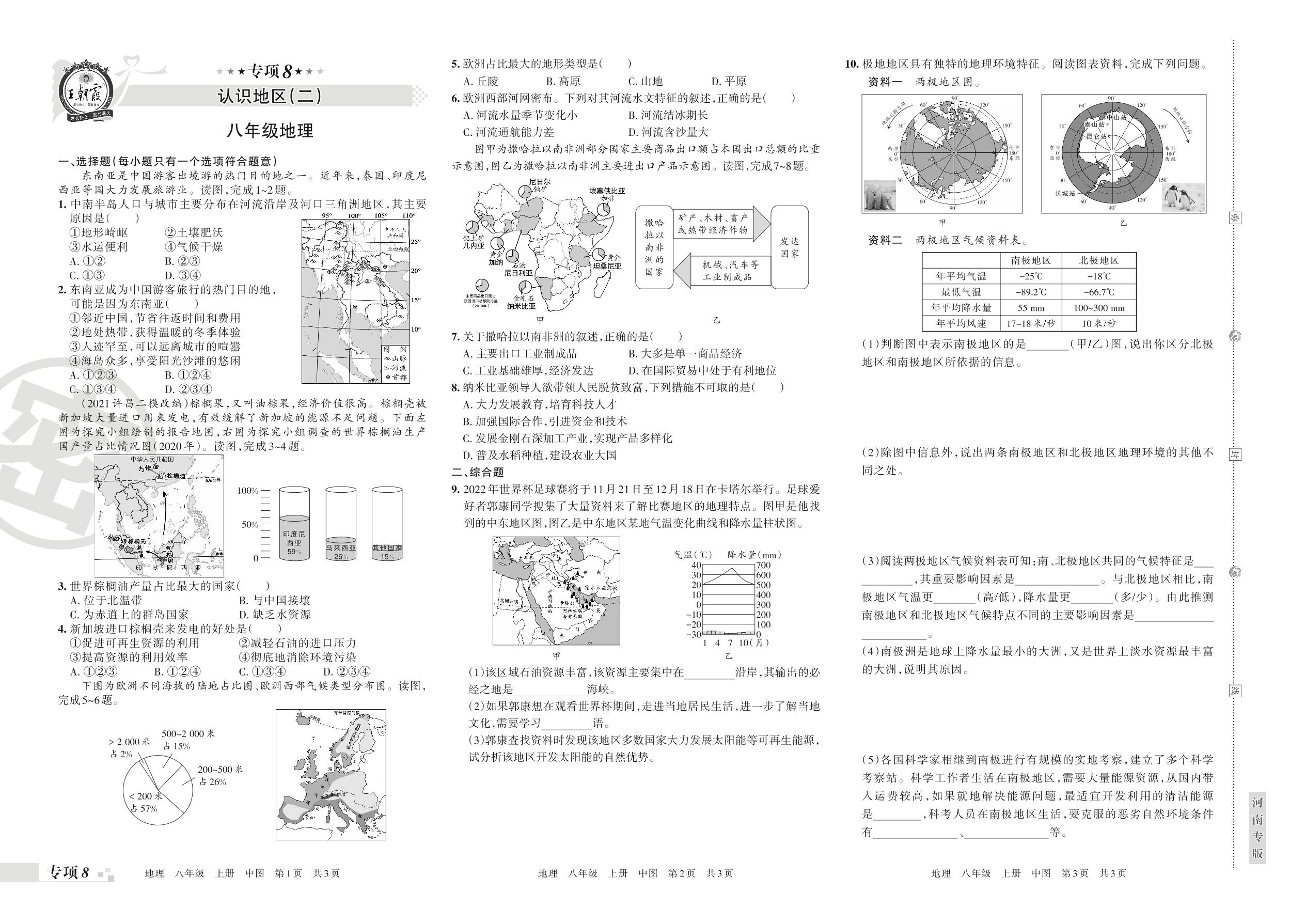 王朝霞期末专项卷——认识地区(二)八年级上册地理(中图版)【8】