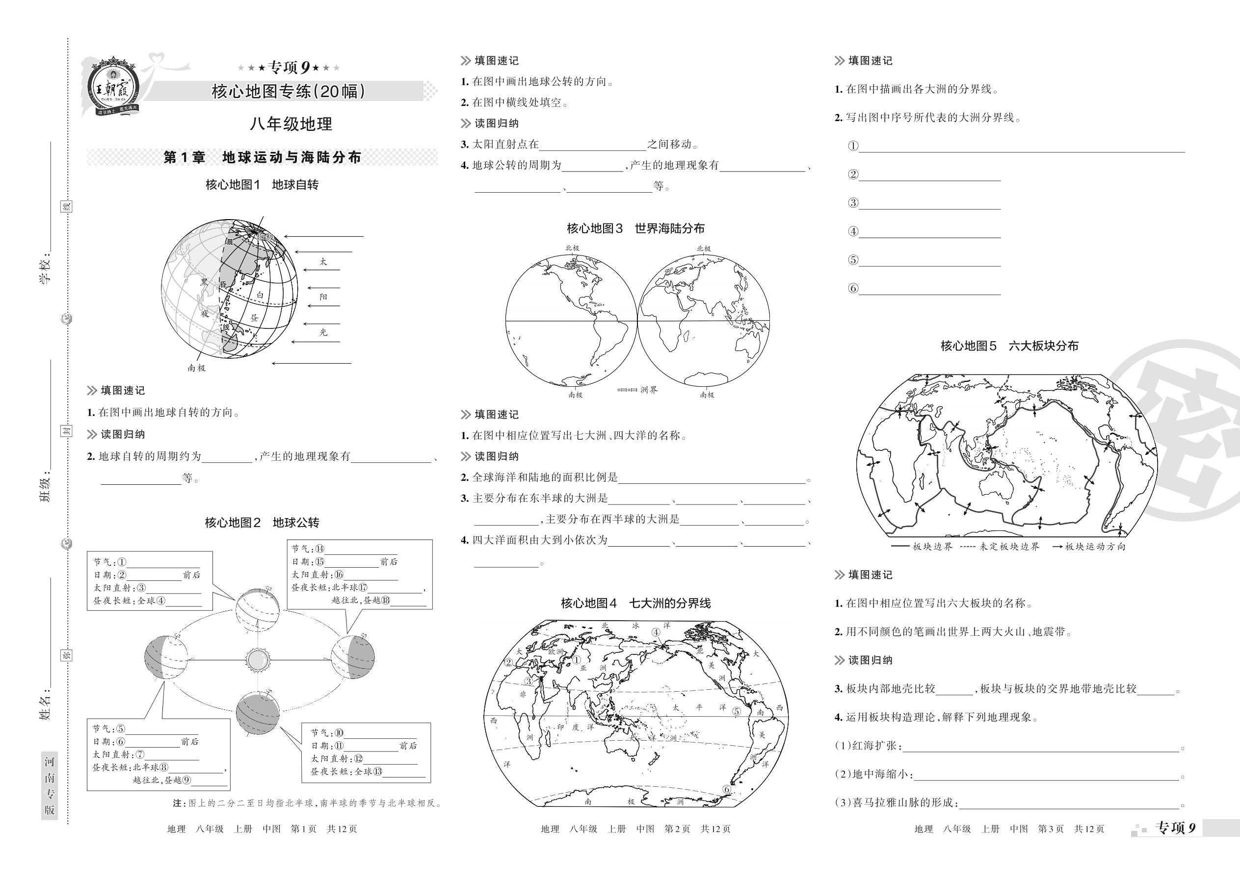 王朝霞期末专项卷——核心地图专练(20幅)八年级上册地理(中图版)【9】