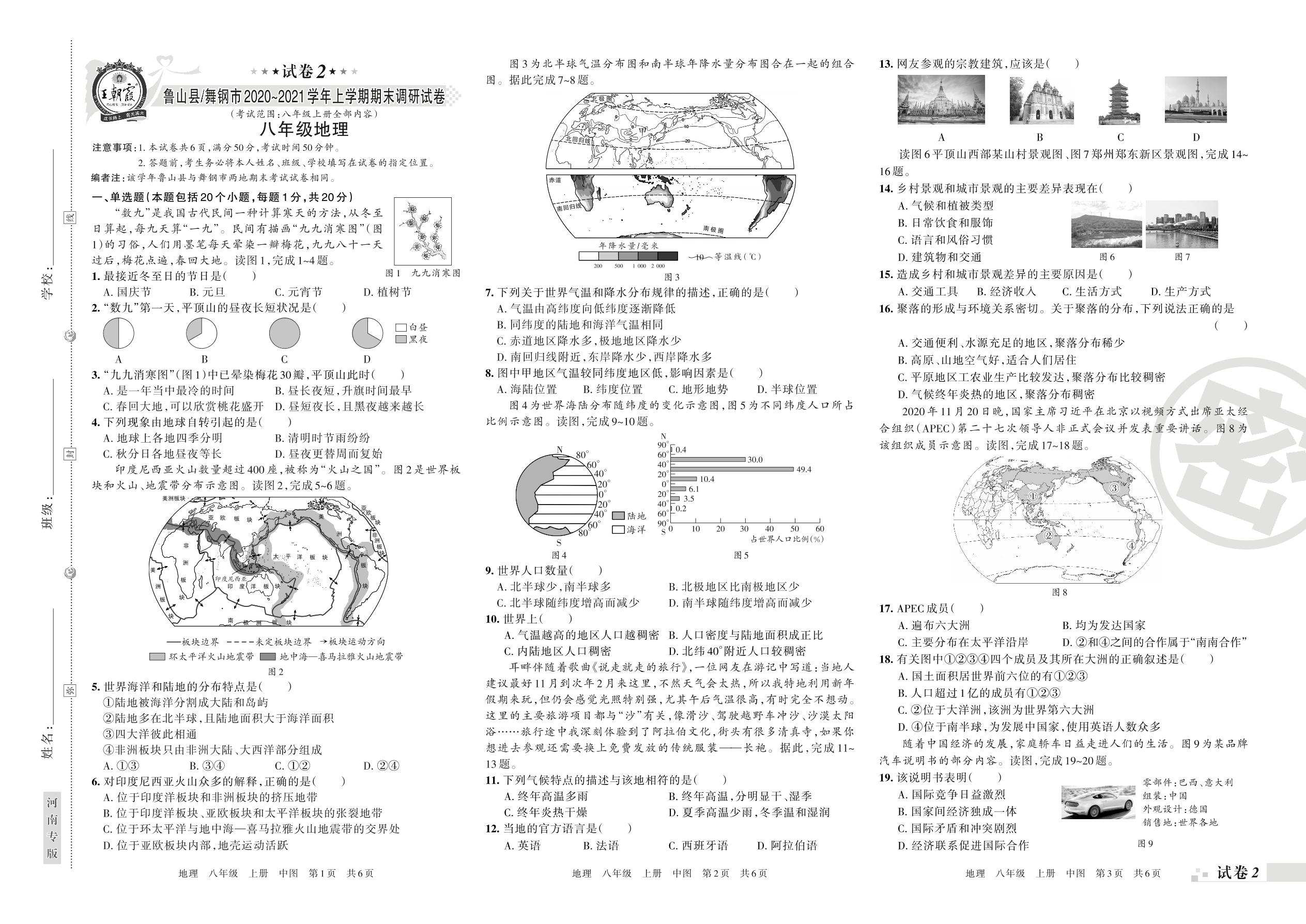 平顶山市鲁山县、舞钢市2020~2021学年上学期期末调研试卷八年级地理(中图版)【2】