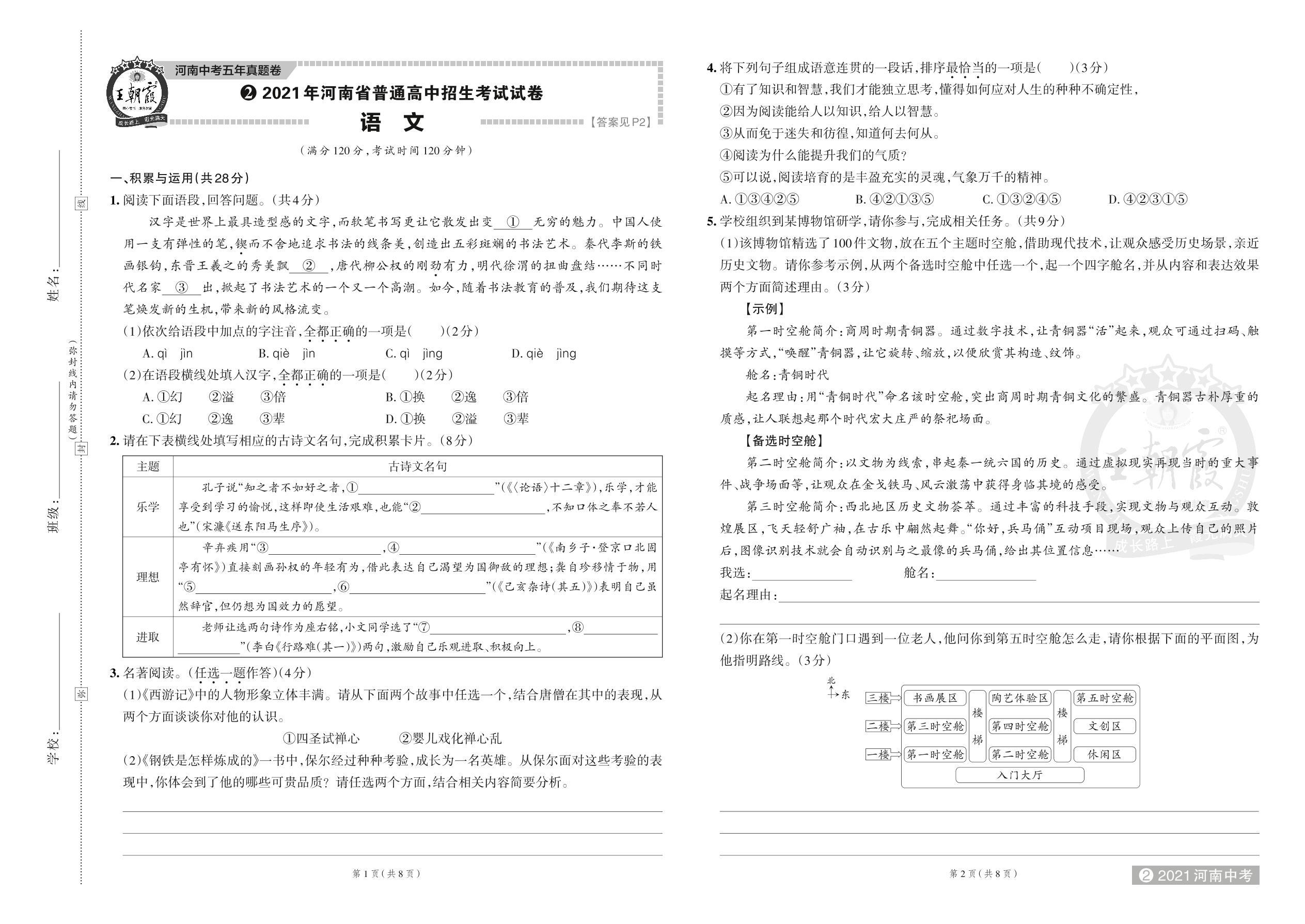 2021 年河南省普通高中招生考试试卷·语文【2】