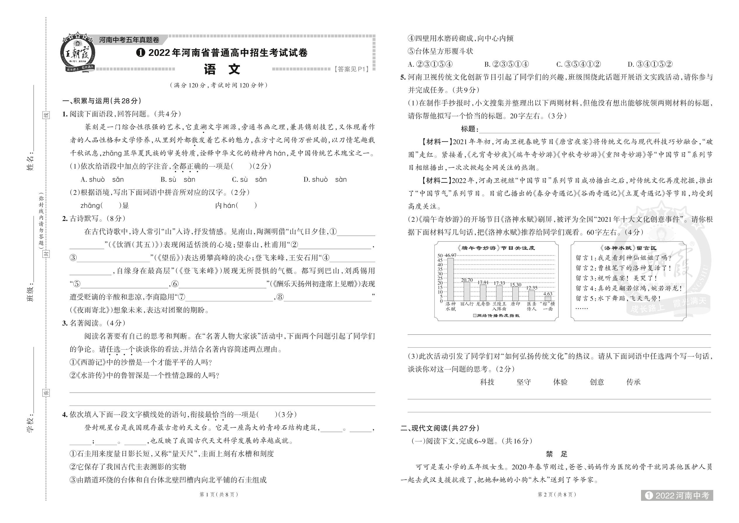 2022 年河南省普通高中招生考试试卷·语文【1】