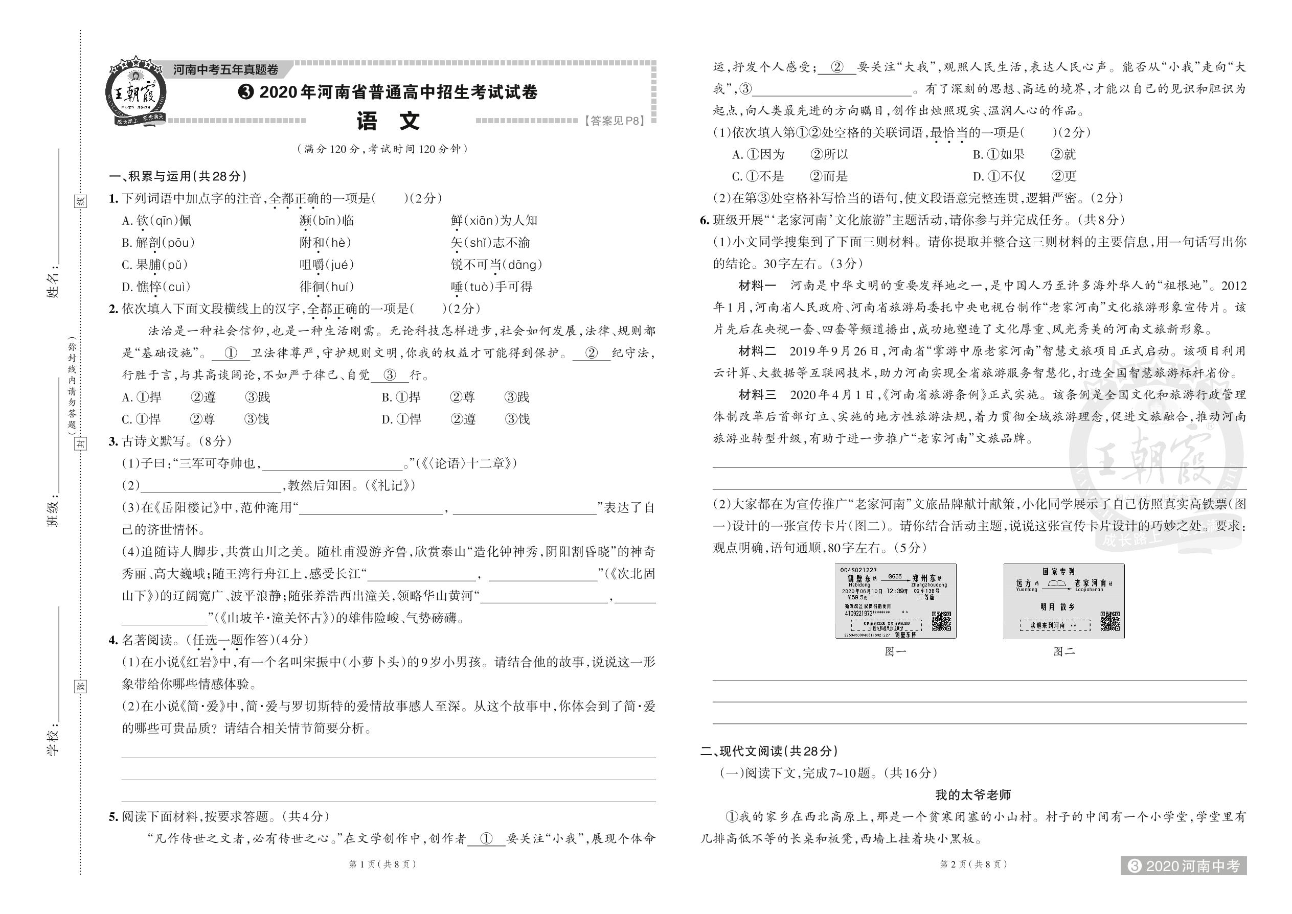 2020 年河南省普通高中招生考试试卷·语文【3】