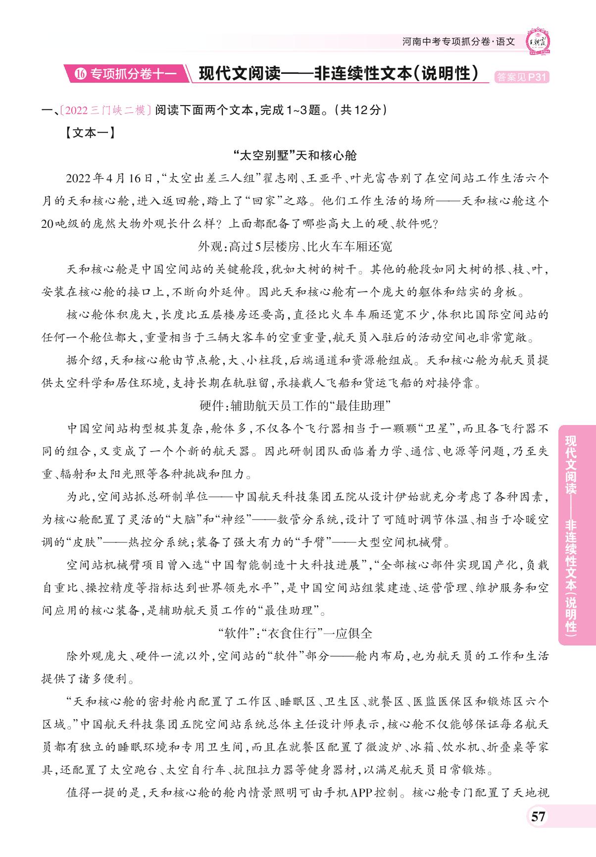 河南中考专项抓分卷十一 现代文阅读——非连续性文本(说明性)·语文【16】