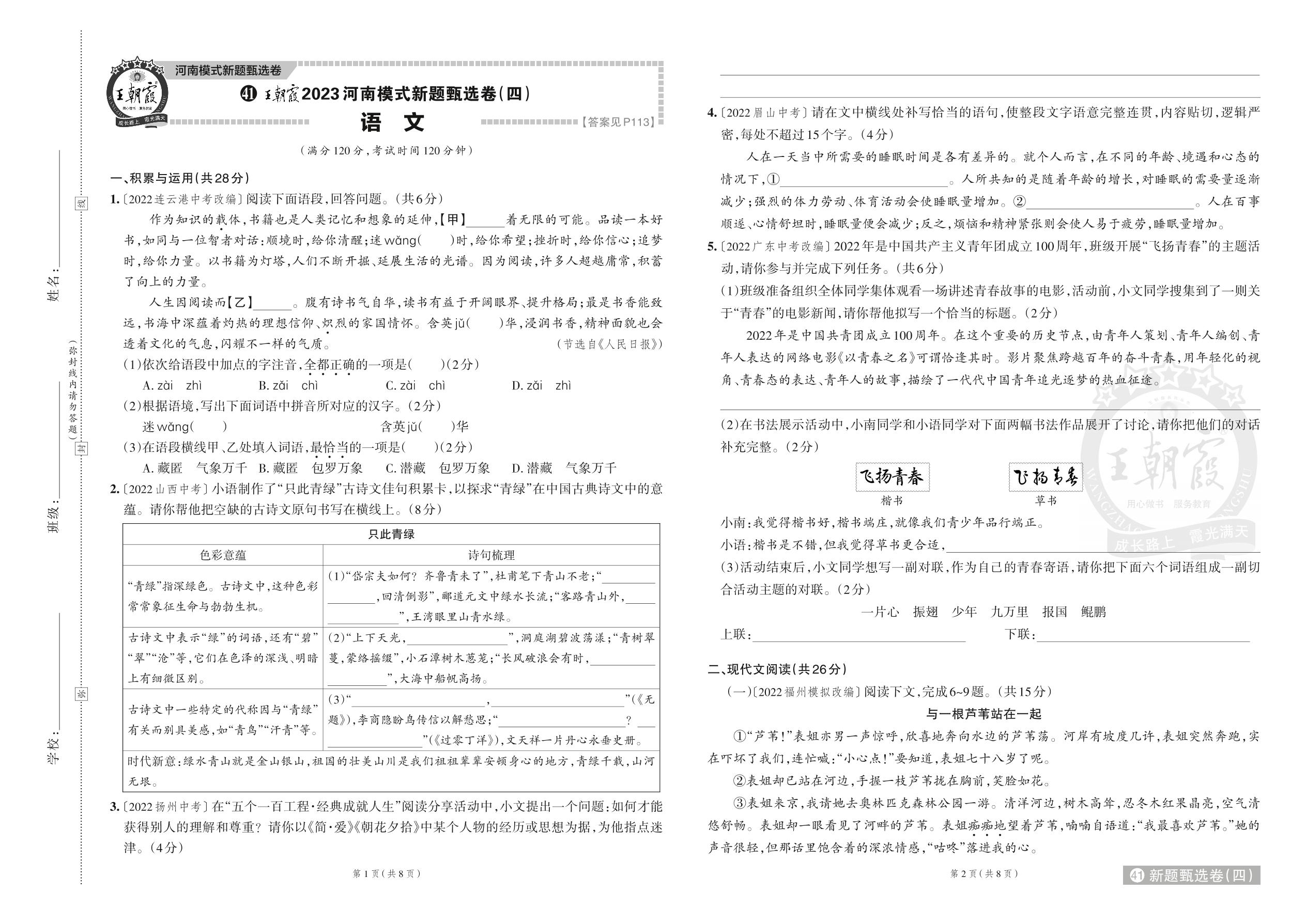 王朝霞2023河南模式新题甄选卷(四)·中考语文【41】