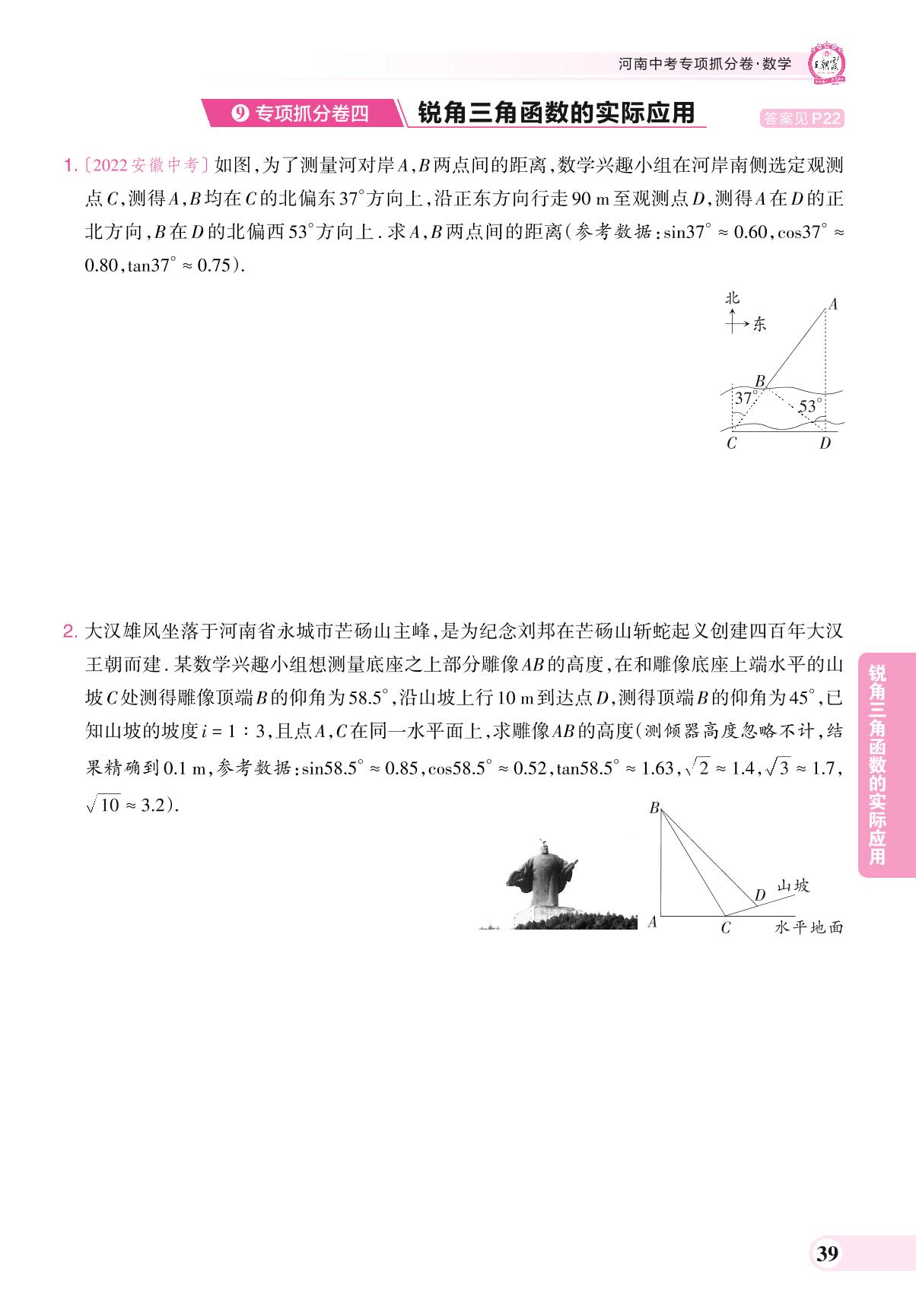 河南中考专项抓分卷四 锐角三角函数的实际应用·数学【9】
