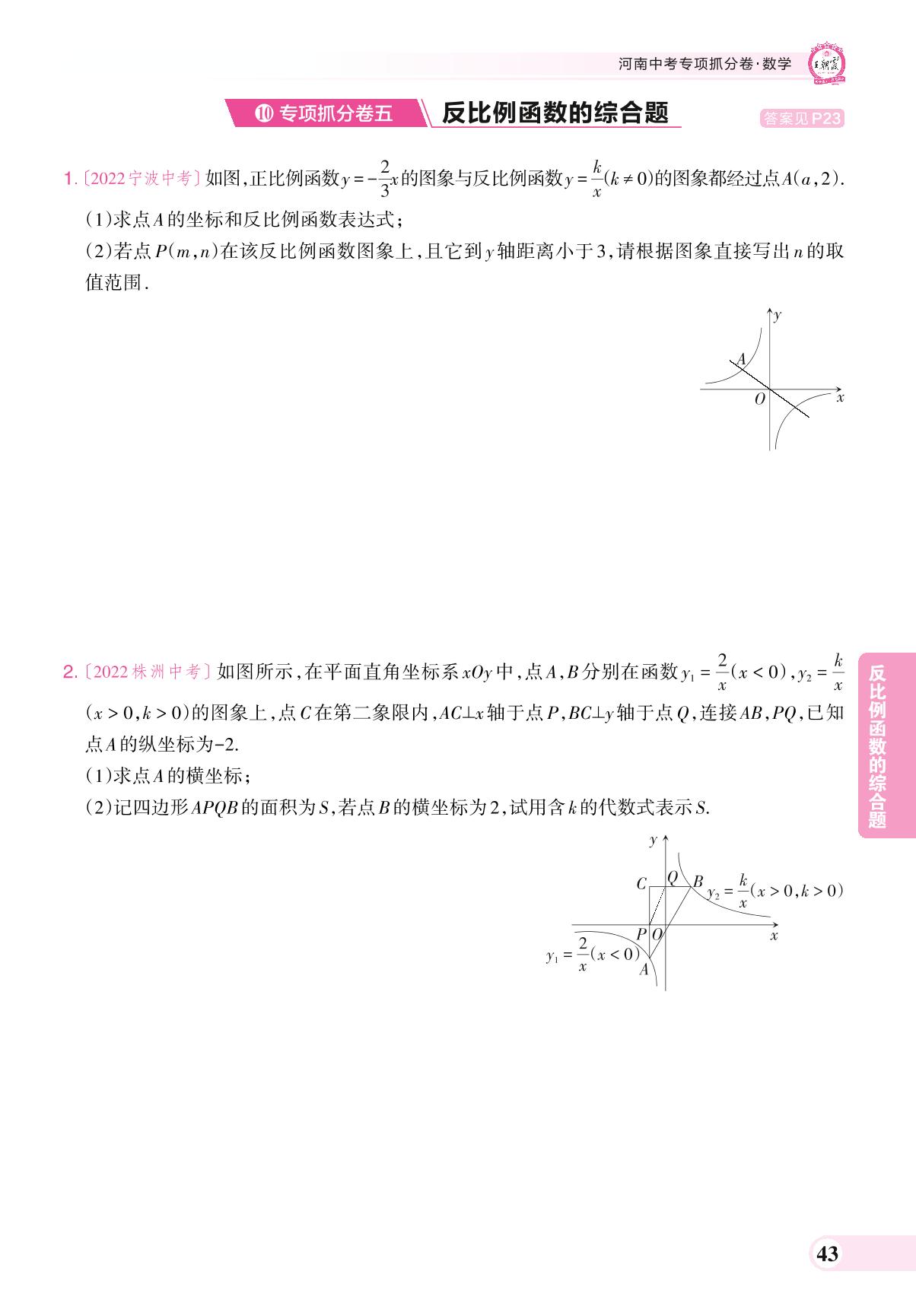 河南中考专项抓分卷五 反比例函数的综合题·数学【10】