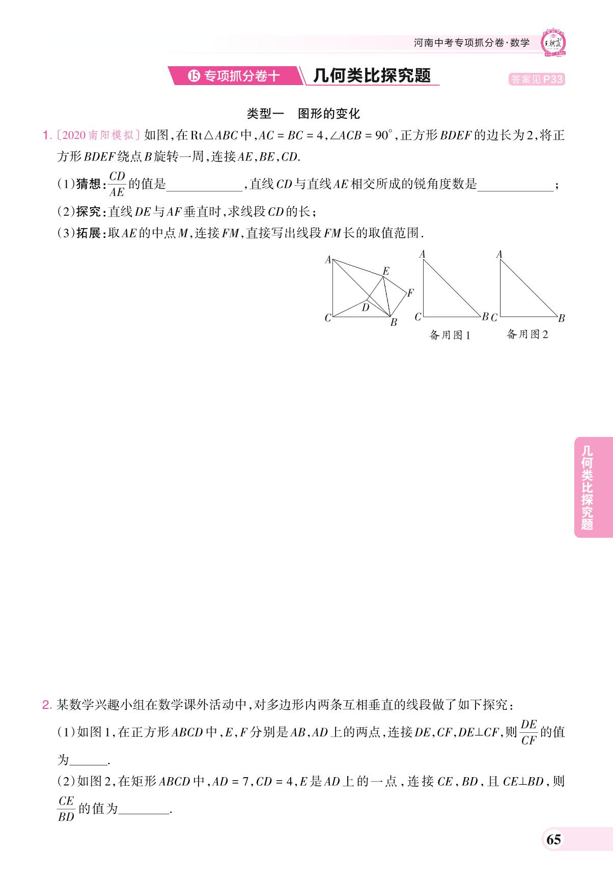 河南中考专项抓分卷十 几何类比探究题·数学【15】