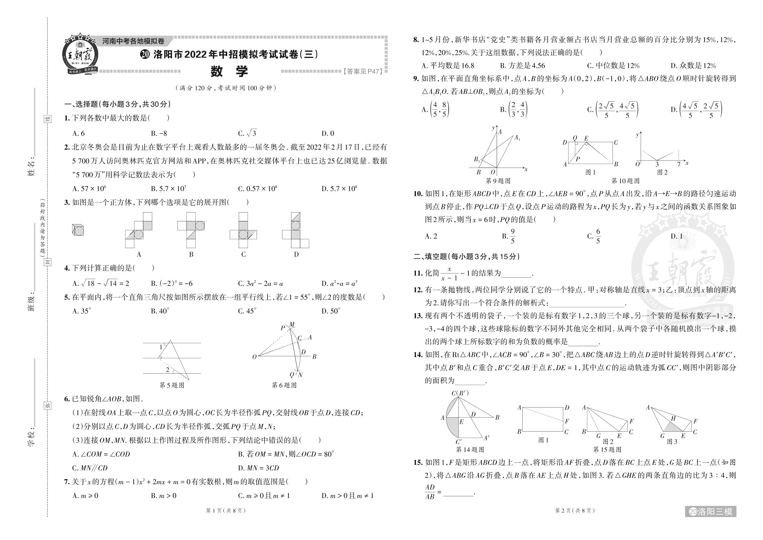 洛阳市2022年中招模拟考试试卷(三)·数学【20】