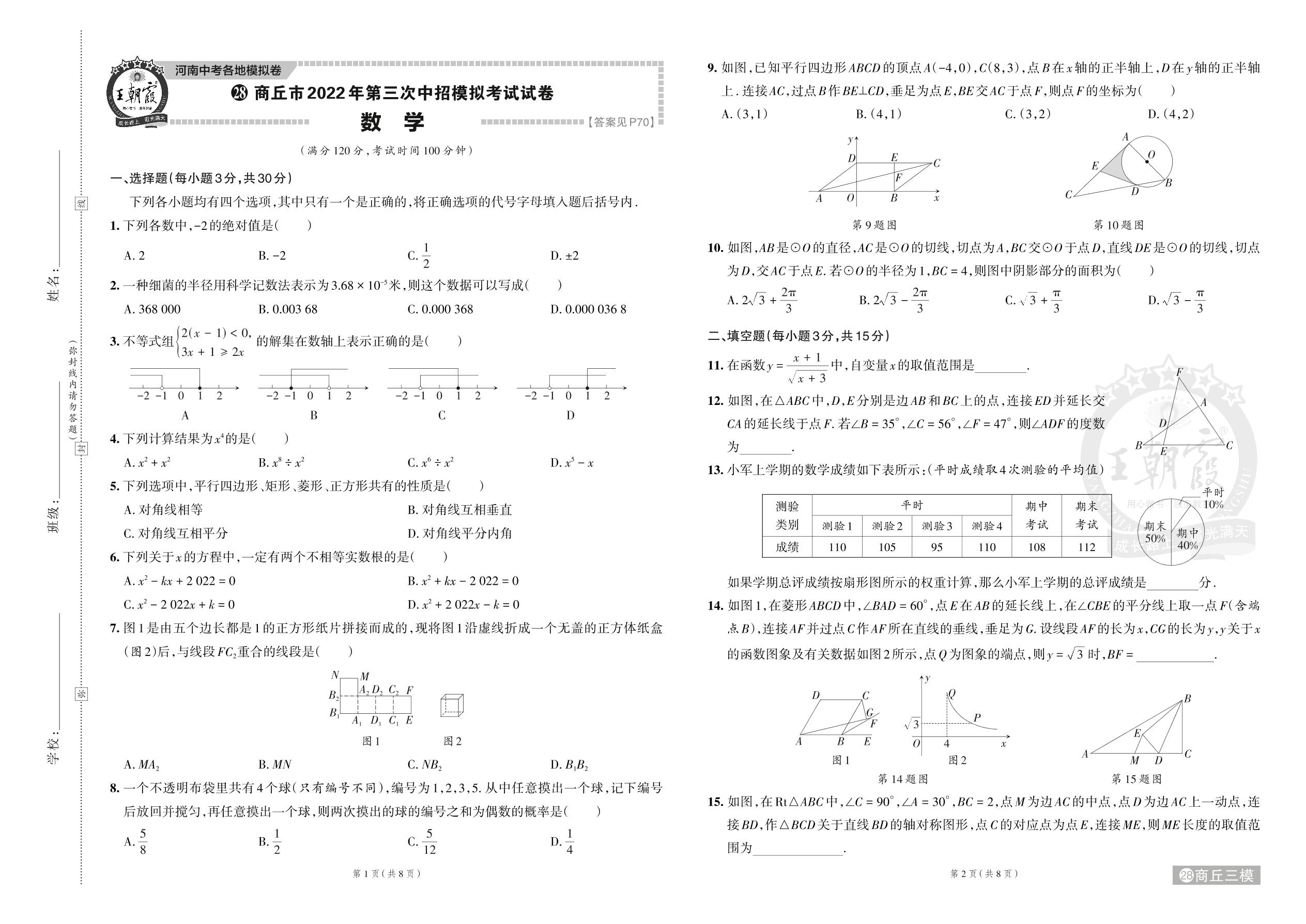 商丘市2022年第三次中招模拟考试试卷·数学【28】