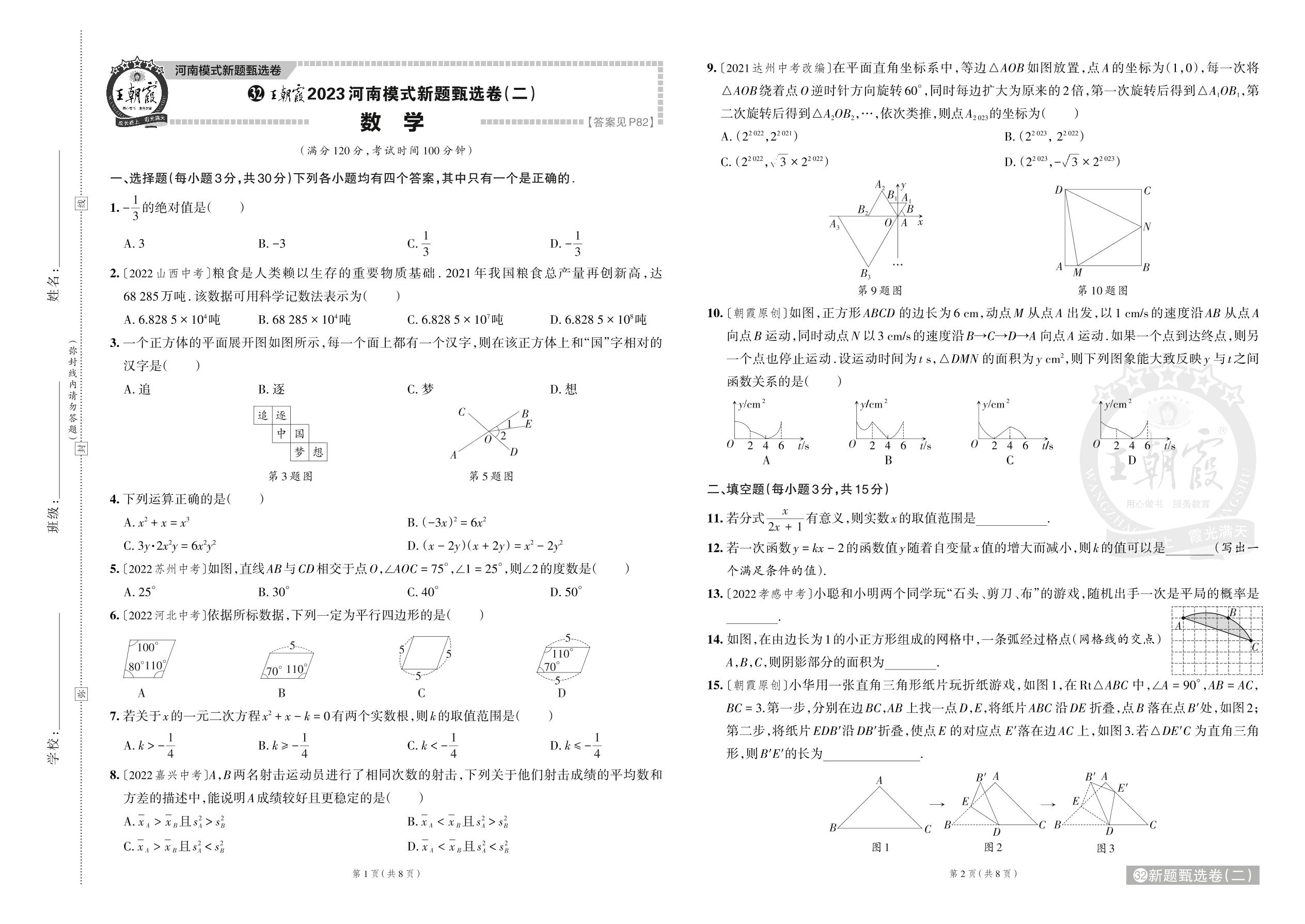 王朝霞2023河南模式新题甄选卷(二)·中考数学【32】