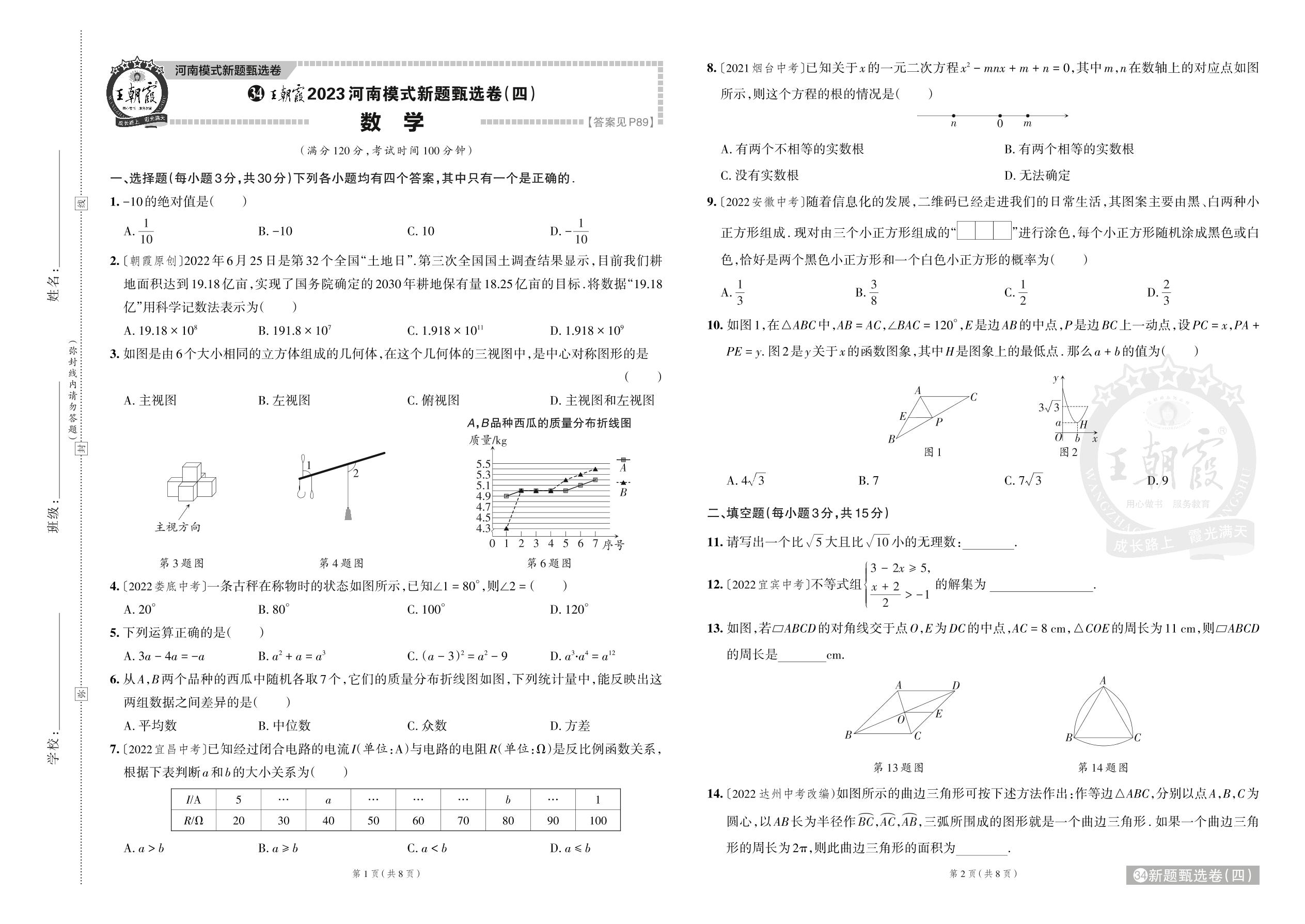 王朝霞2023河南模式新题甄选卷(四)·中考数学【34】