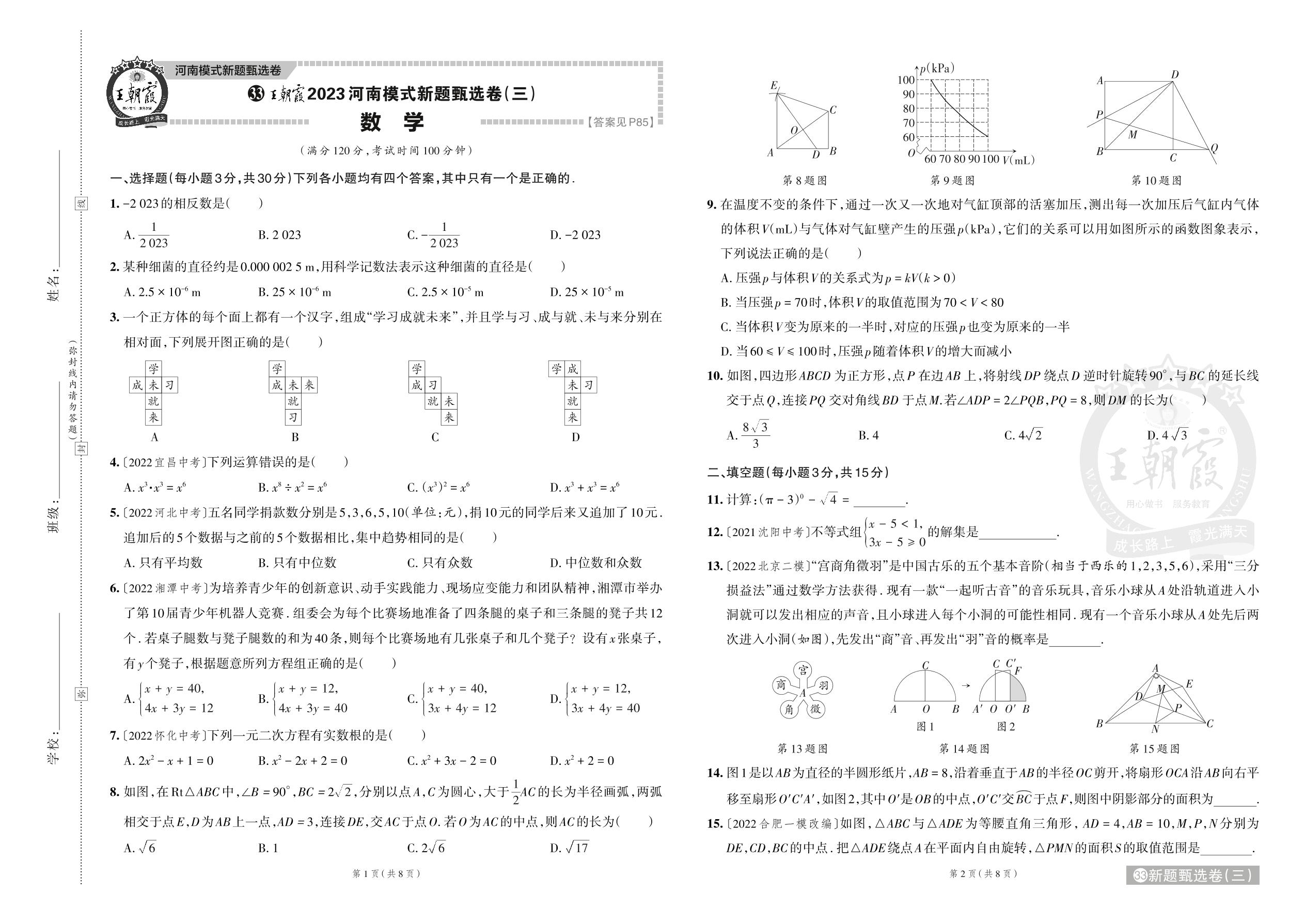 王朝霞2023河南模式新题甄选卷(三)·中考数学【33】