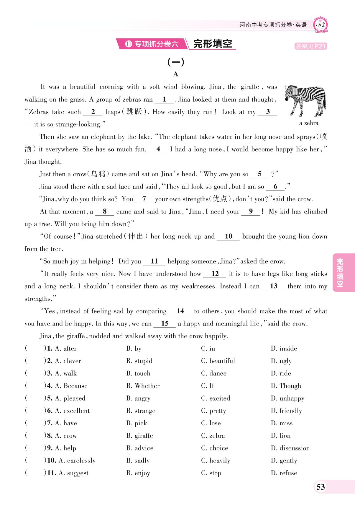 河南中考专项抓分卷六 完形填空·英语【11】