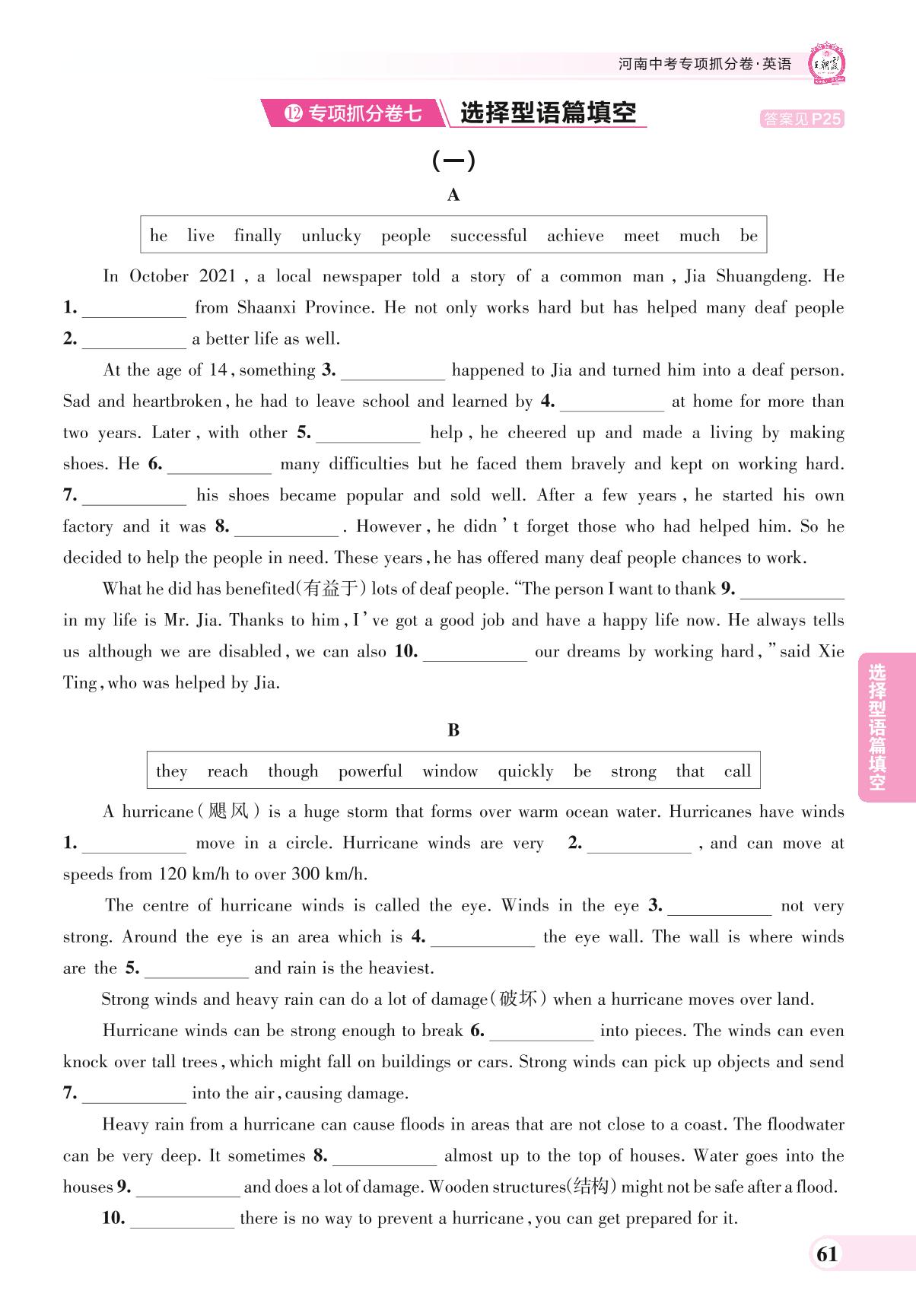 河南中考专项抓分卷七 选择型语篇填空·英语【12】