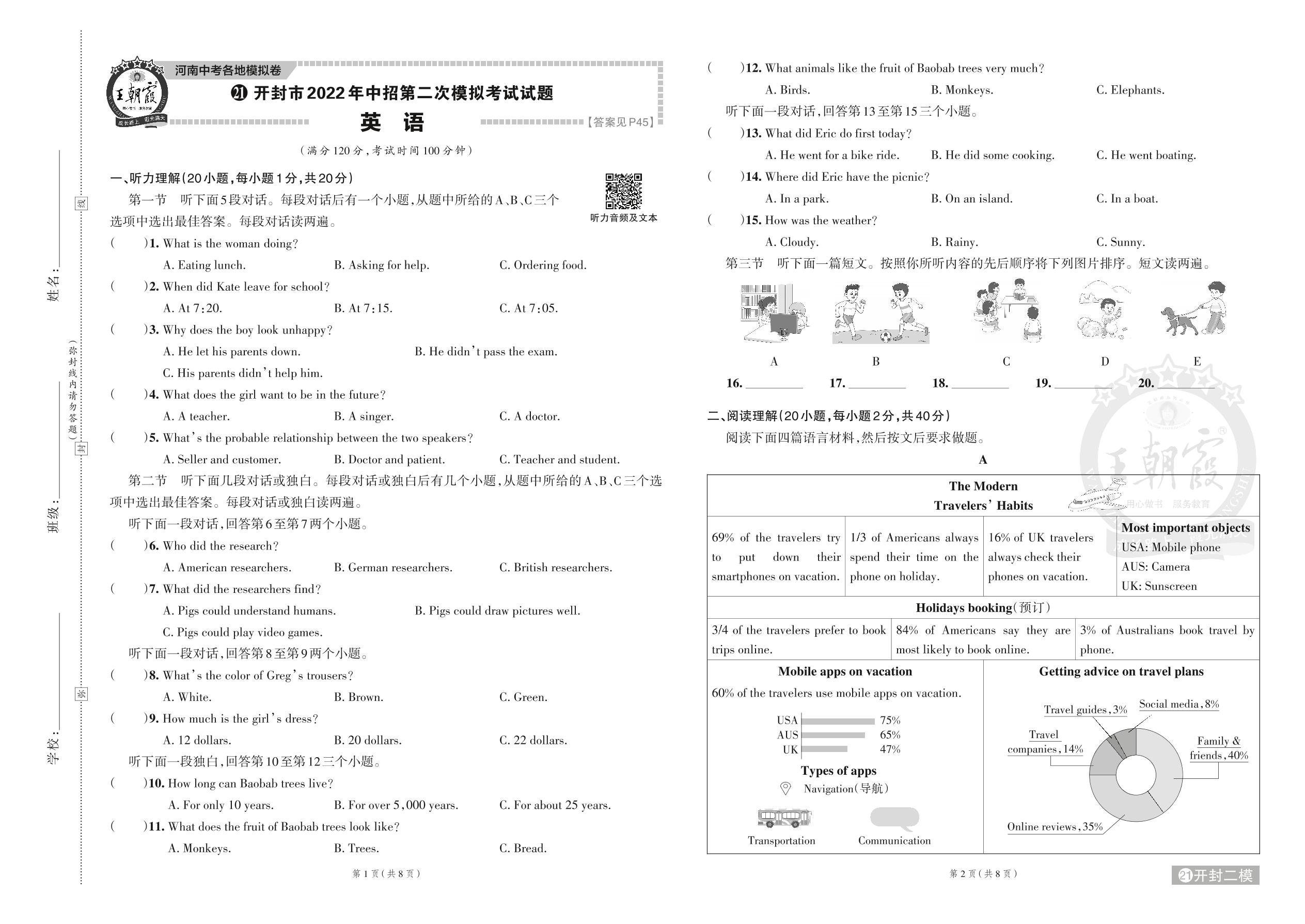 开封市2022年中招第二次模拟考试试题·英语【21】